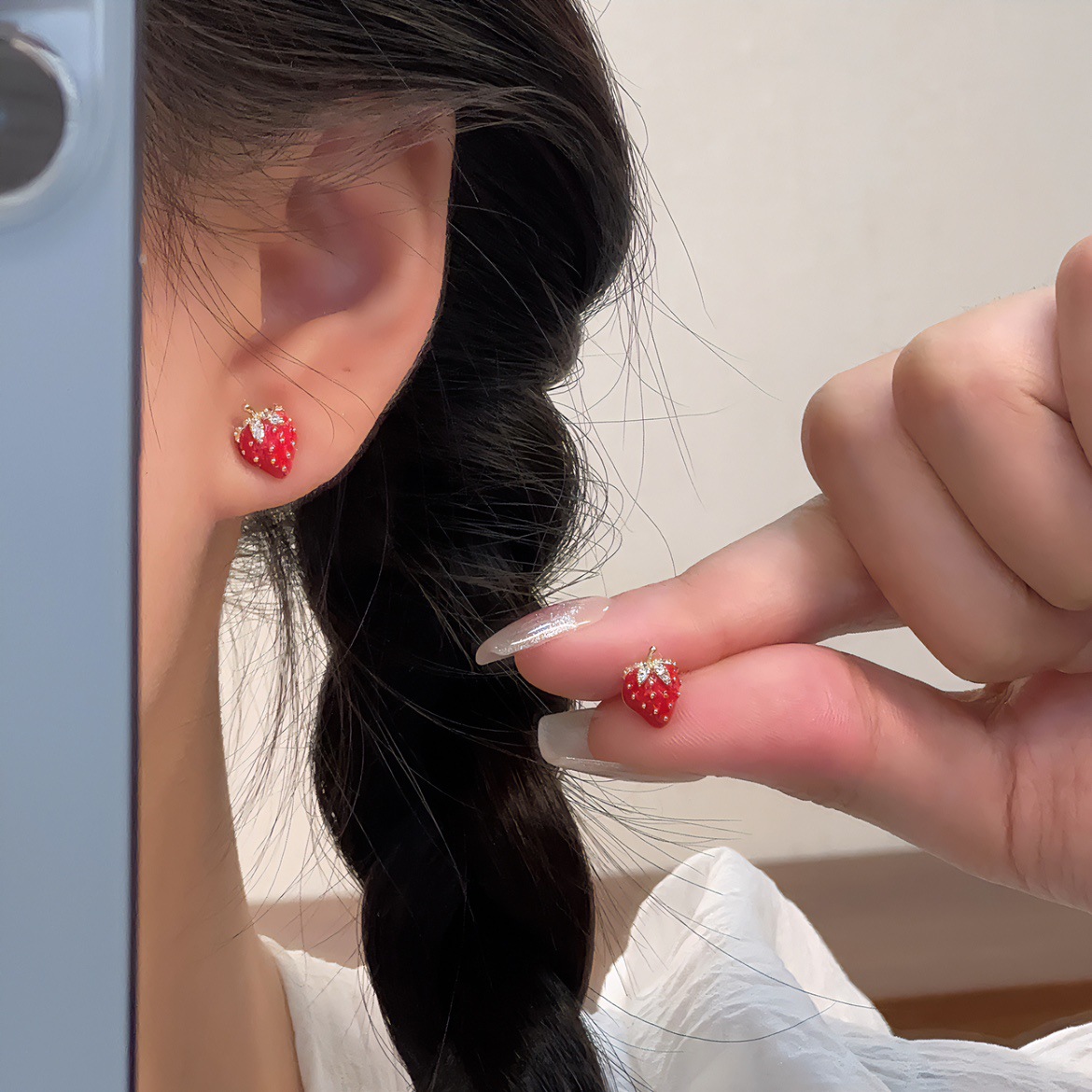 新年の赤いミニイチゴのピアスが精巧で、ピアスを外して寝ます。ピアスを外しなくてもいいです。