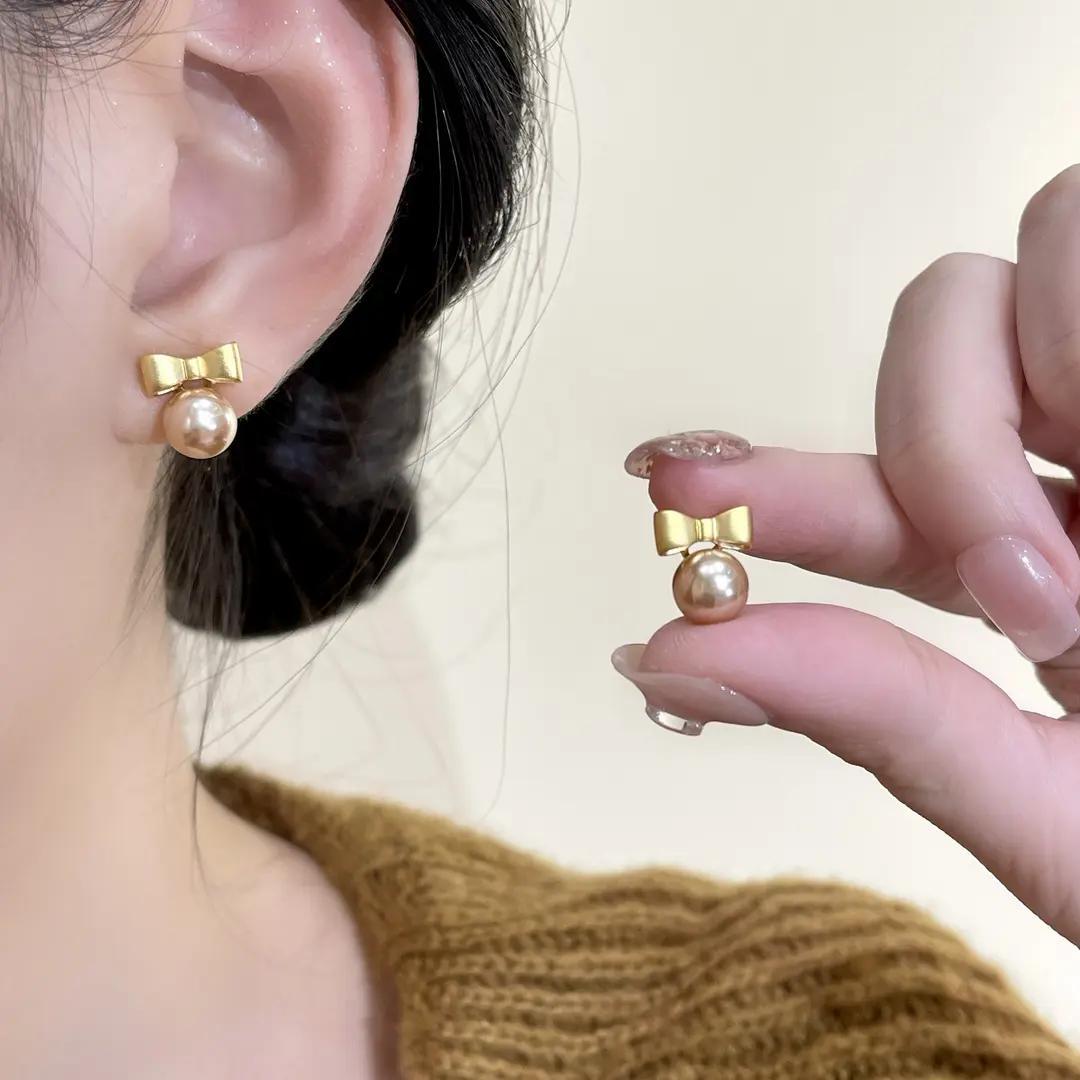 甘美なダンカンの蝶結び真珠のピアス