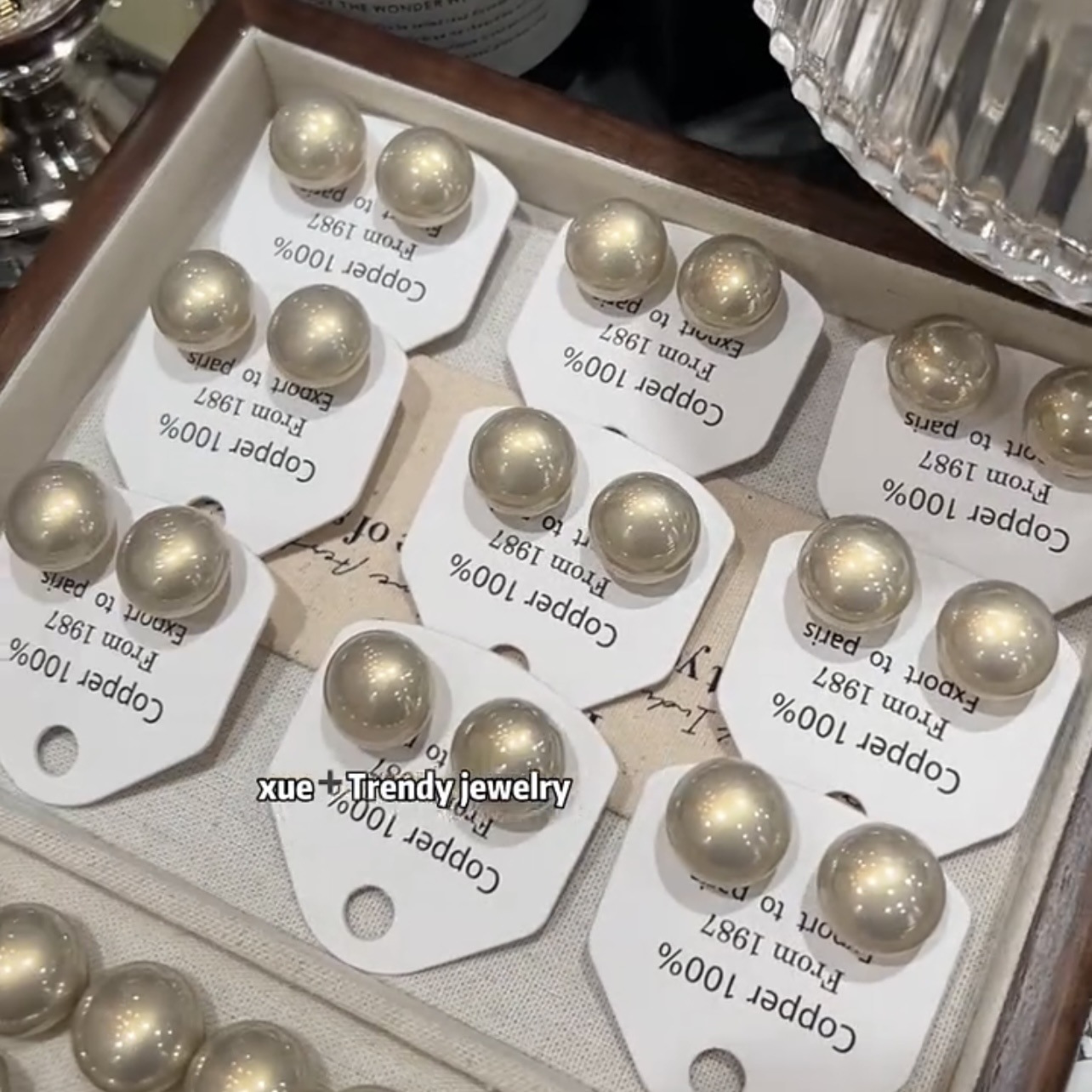雰囲気のシャンパン色のパンビーズピアスs925銀針淑女雰囲気のピアス