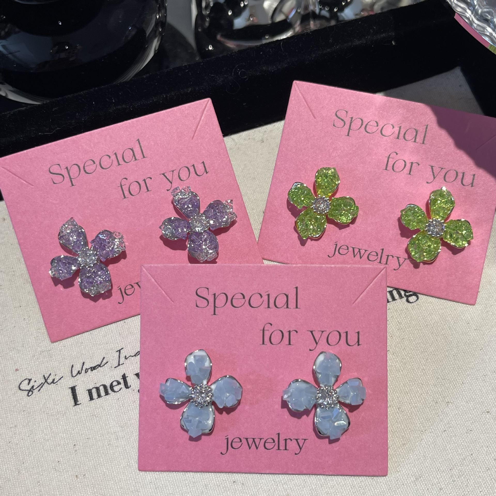 フランス式の甘いゼリーの粉の水晶の方の砂糖のイヤリングの女性の大衆の個性は百合シンプルで精巧なファッションの通勤の耳飾りです。
