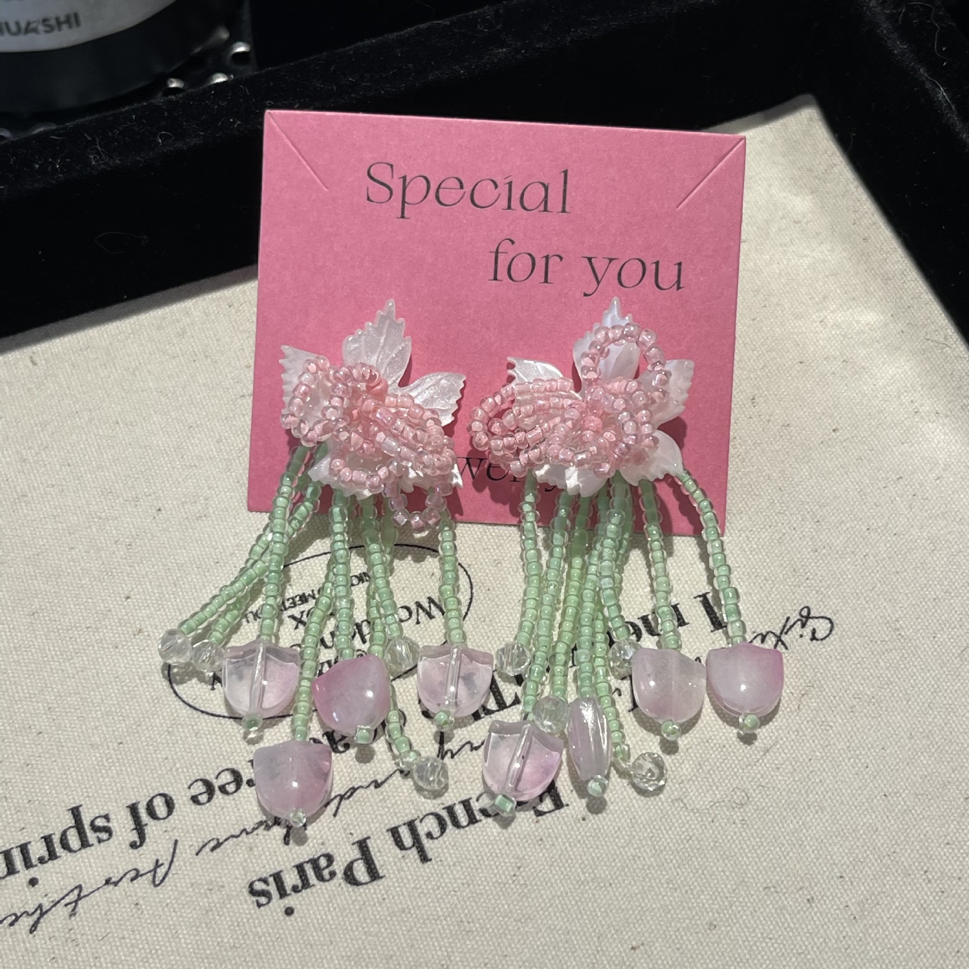 リゾート風カラービーズ貝殻花流蘇イヤリング夏の甘いかわいいドーパミン花びらイヤリング女性銀針
