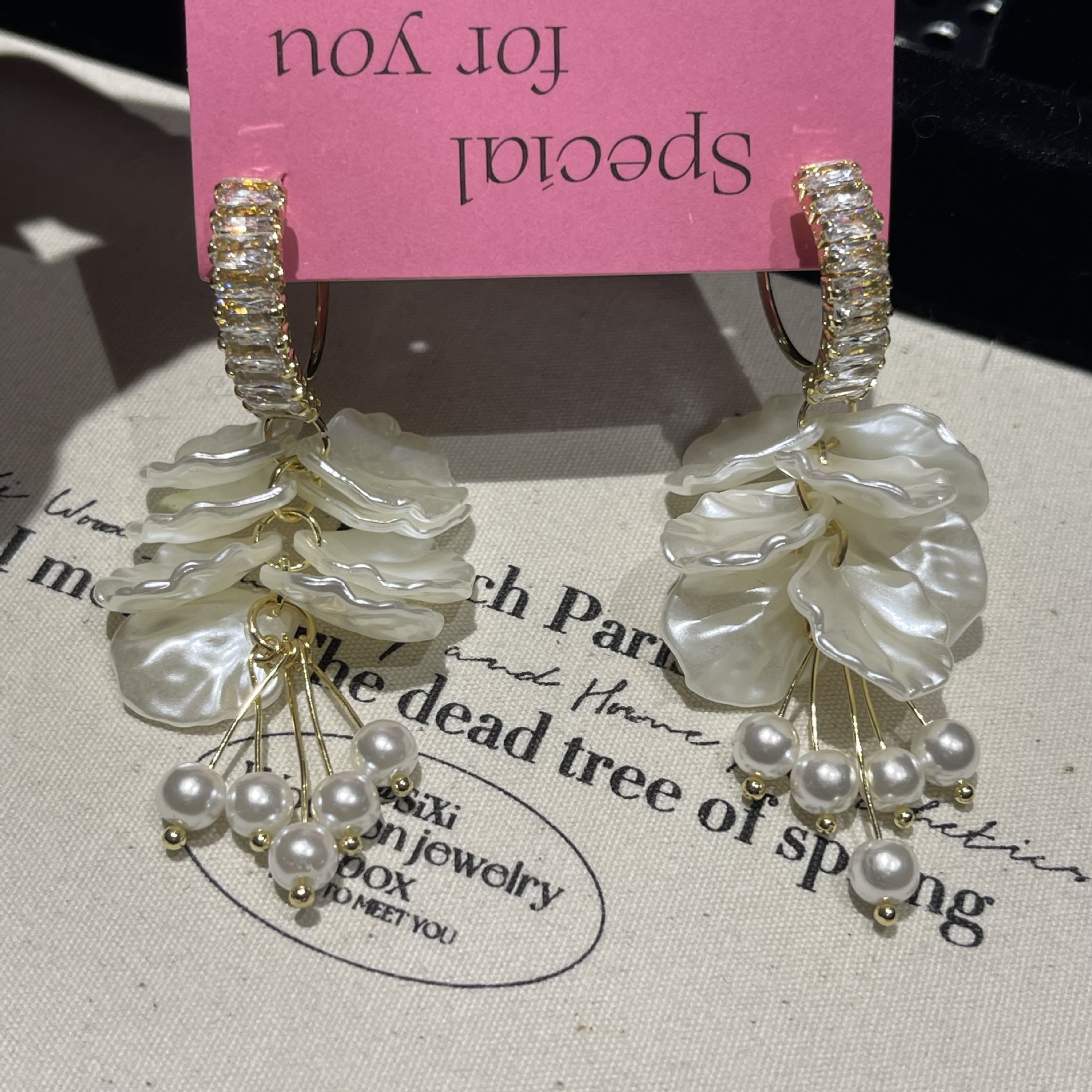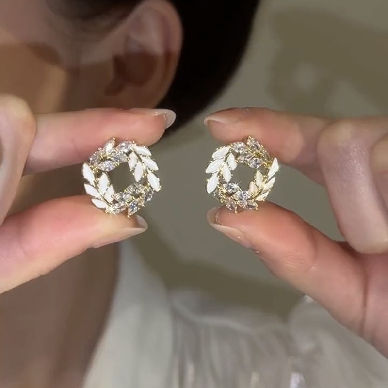 ジルコン白花びら気質イヤリングs925銀針淑女甘美気質百合イヤリング甘美可愛い小清新