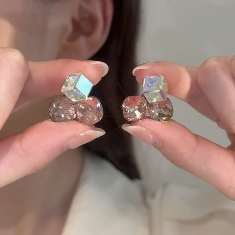 高級感グラデーション不規則立体方糖イヤリング女性のファッション気質ファッションシンプルな個性小衆精致耳飾り