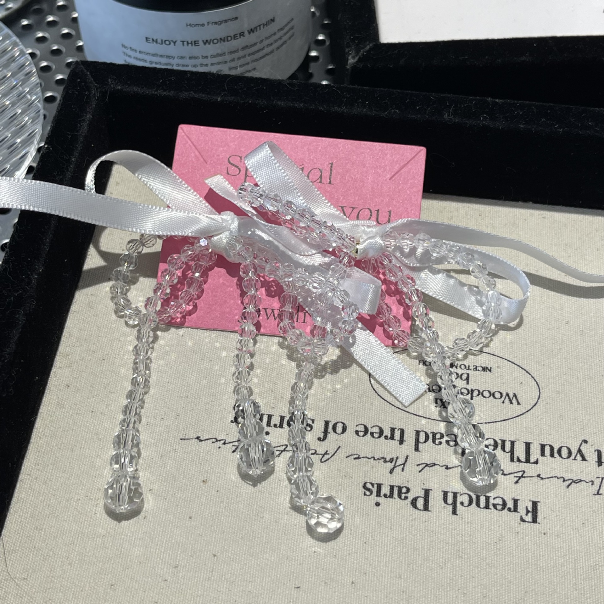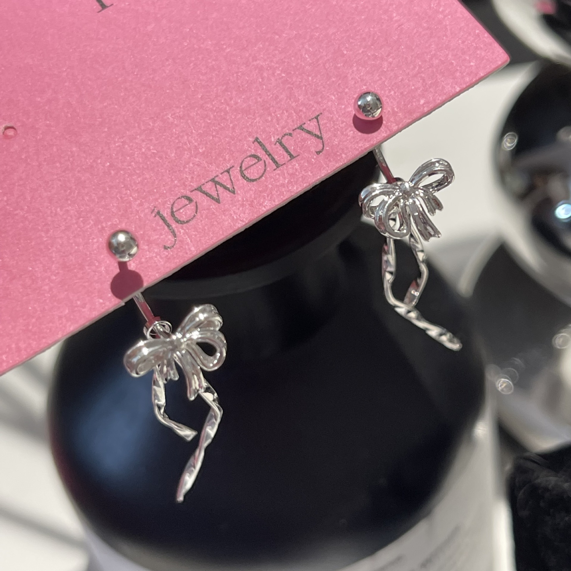 気質リボン蝶結び水晶イヤリング女性夏小清新甘美で可愛い春夏ピアス925銀針