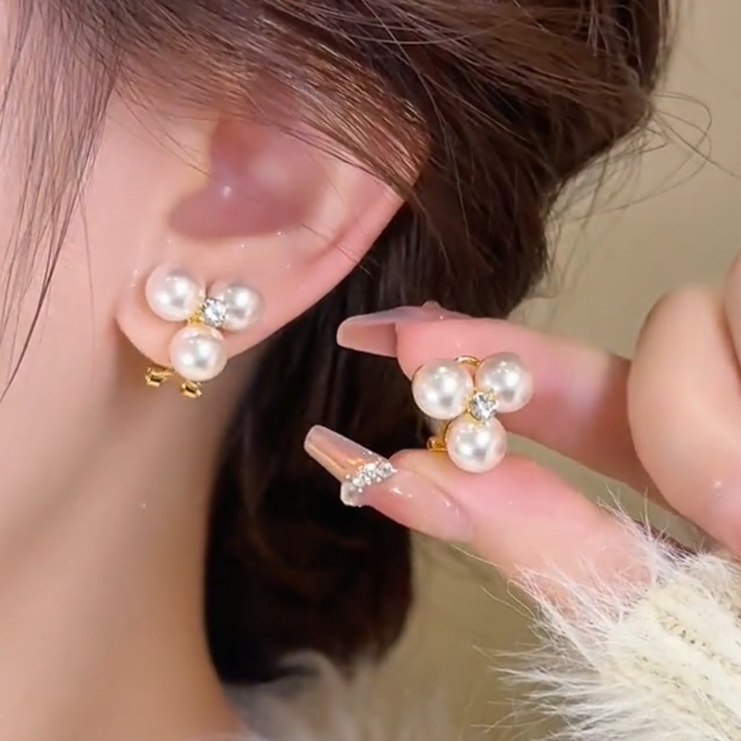3つの真珠のフランスのレトロな真珠のジルコンの耳のボタンの高級感の小さい大衆の気質の日常の通勤のイヤリングのs925
