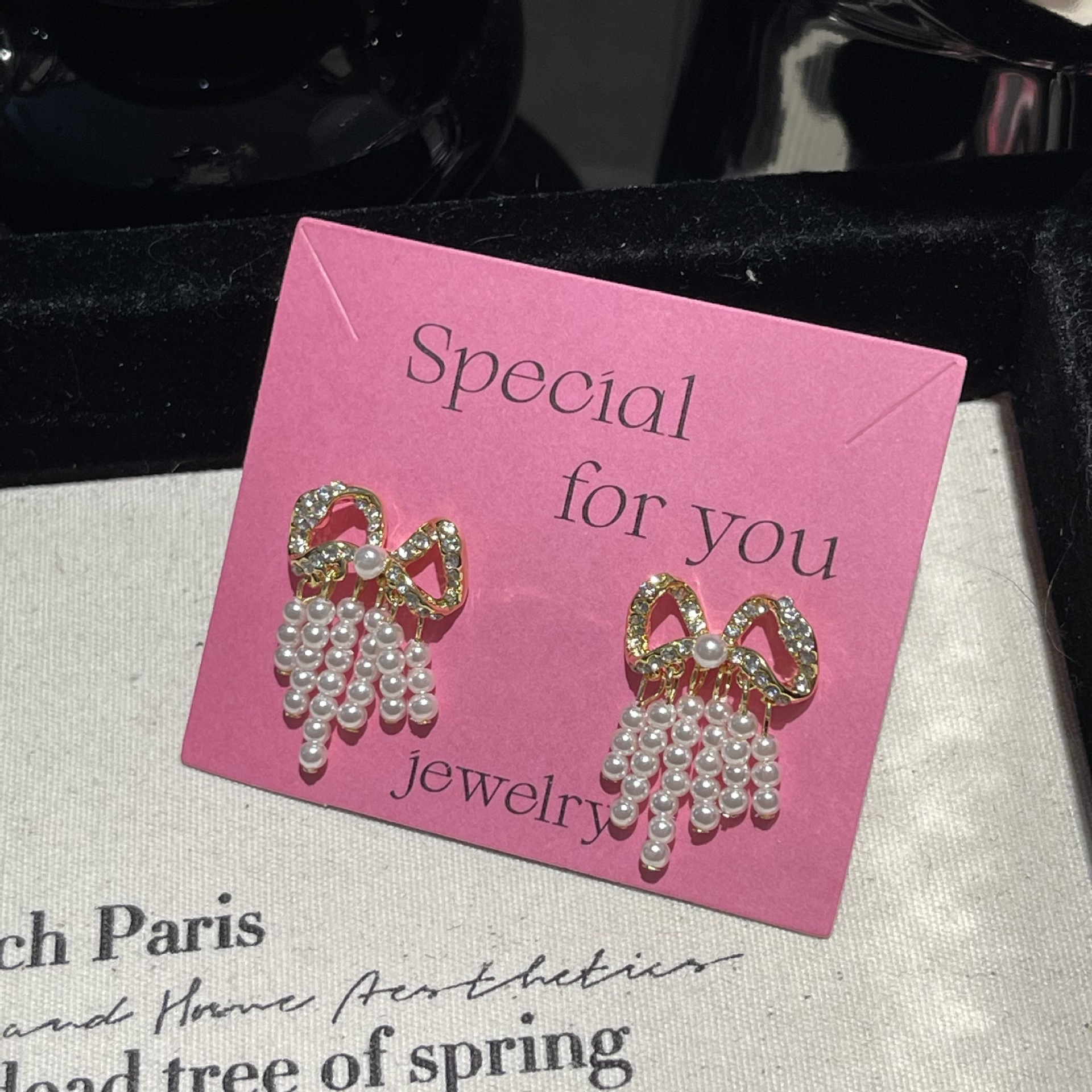 フランス風真珠蝶結びイヤリングs925銀針真珠ビーズの長い蝶結びイヤリングは甘くて可愛いです。