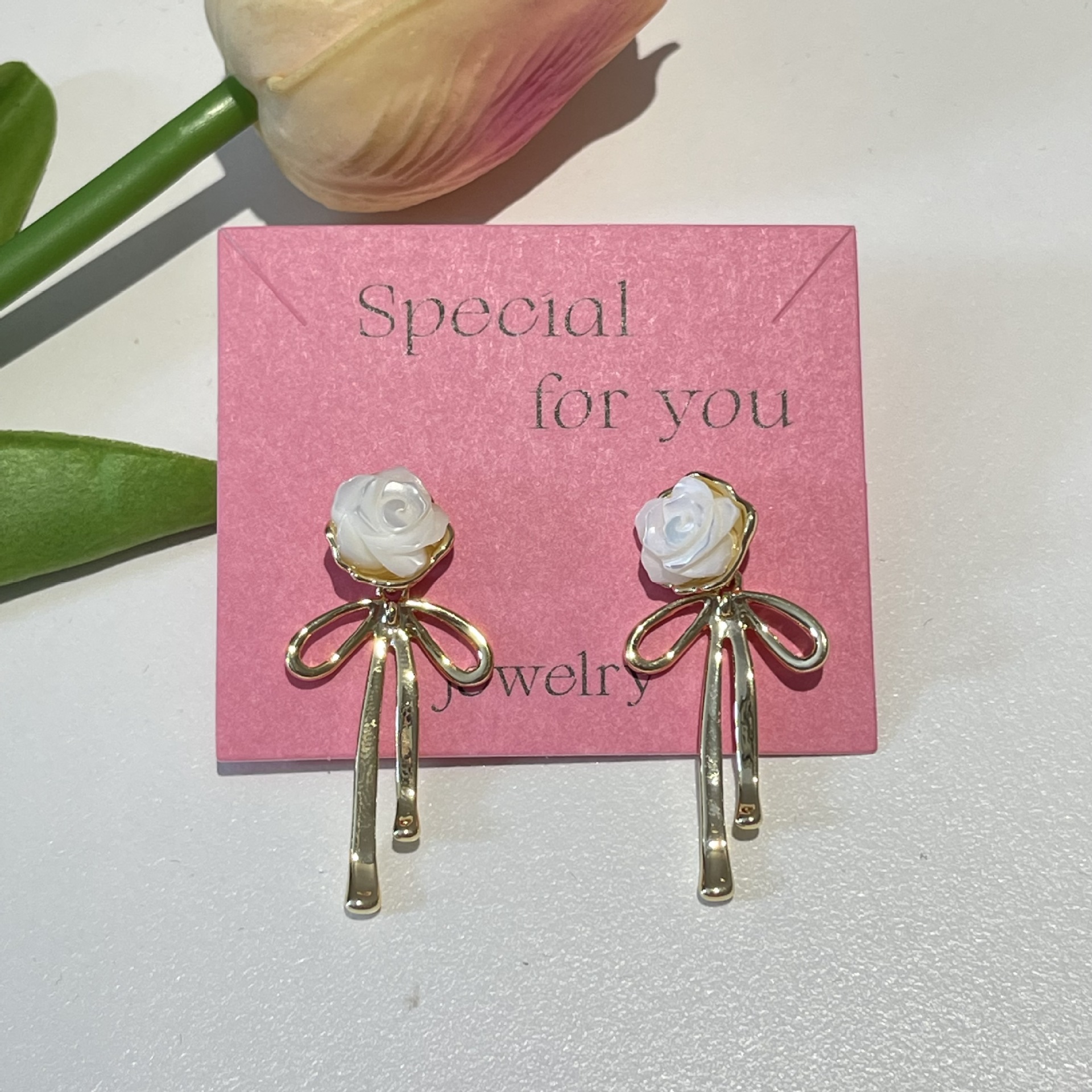 春の貝殻の花の蝶結びのピアスs 925銀の針の金色の蝶結びの甘いかわいいイヤリングのファッションの気質