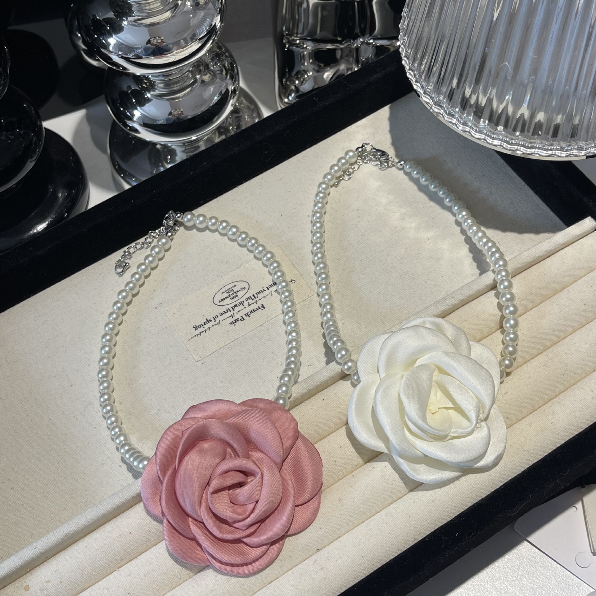 休暇風バラ花真珠ネックレス爆発的な人気choker首輪甘い真珠花鎖