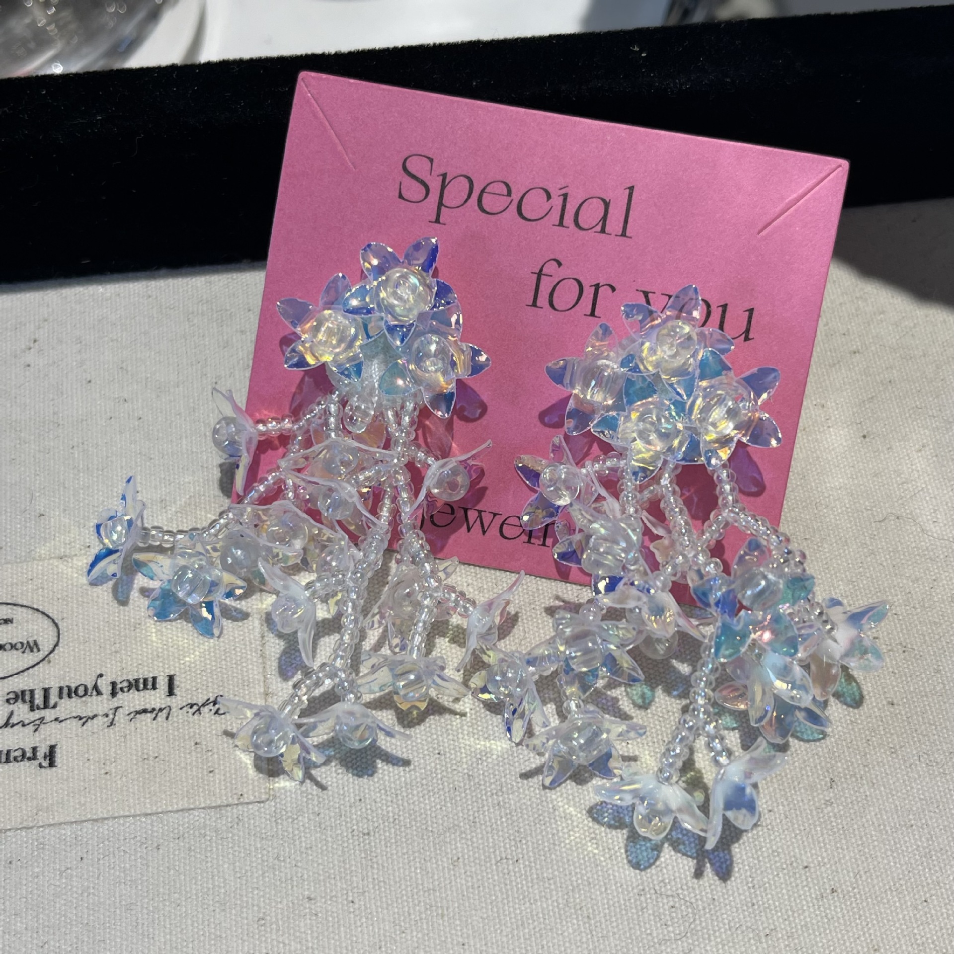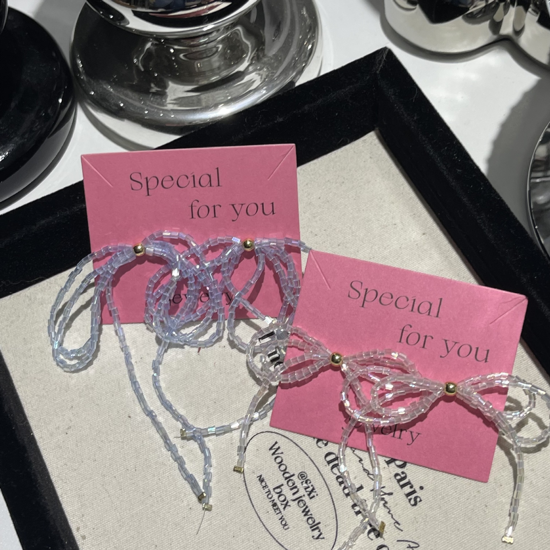 手作りビーズ蝶結びイヤリングs925銀針淑女気質百合ファッション小清新イヤリング女