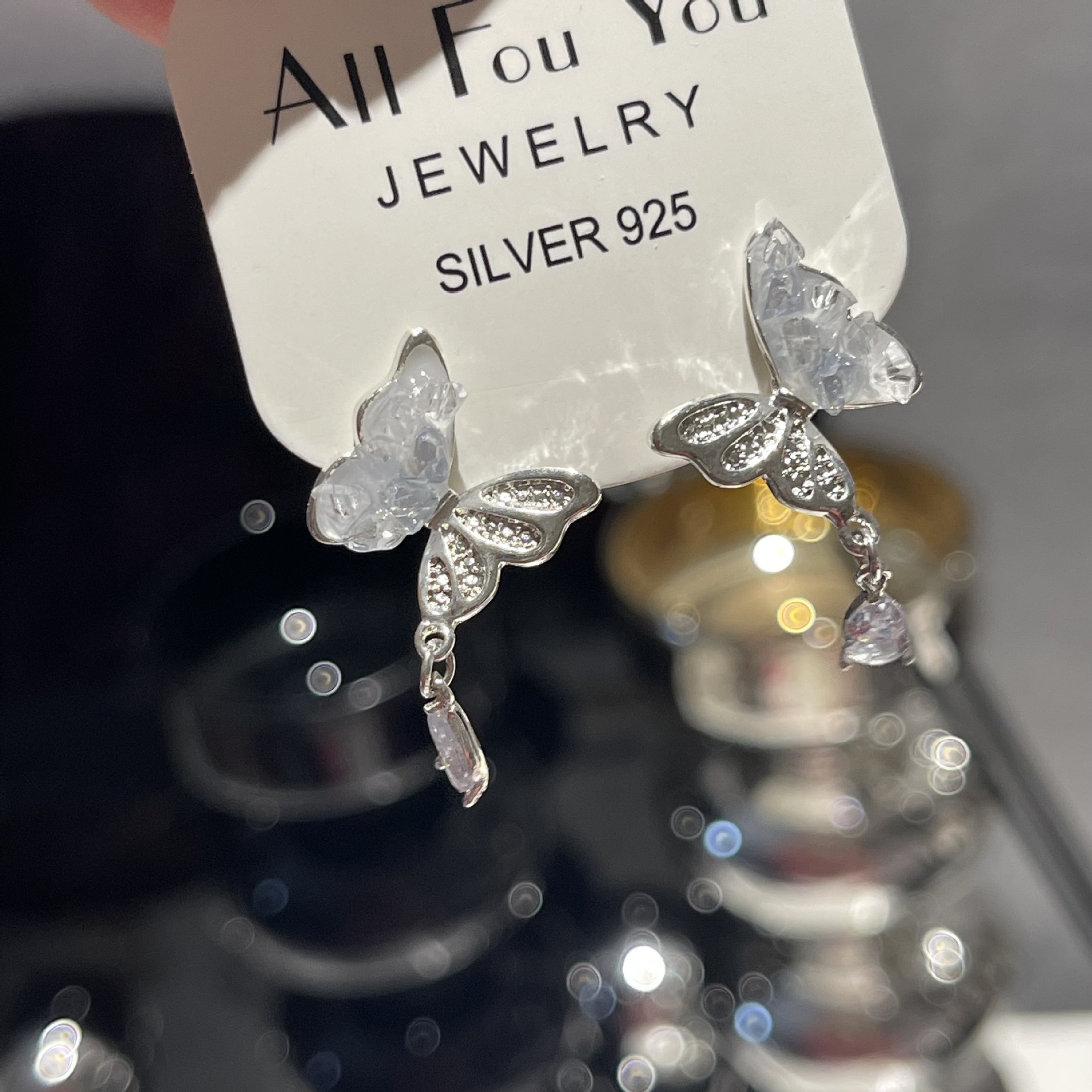 銀色のマイクロはジルコンの蝶結びのイヤリングのチェーンの気質の女性のイヤリングのs925銀の針の新型の潮の爆発の爆発の耳飾りの女性を入れます。