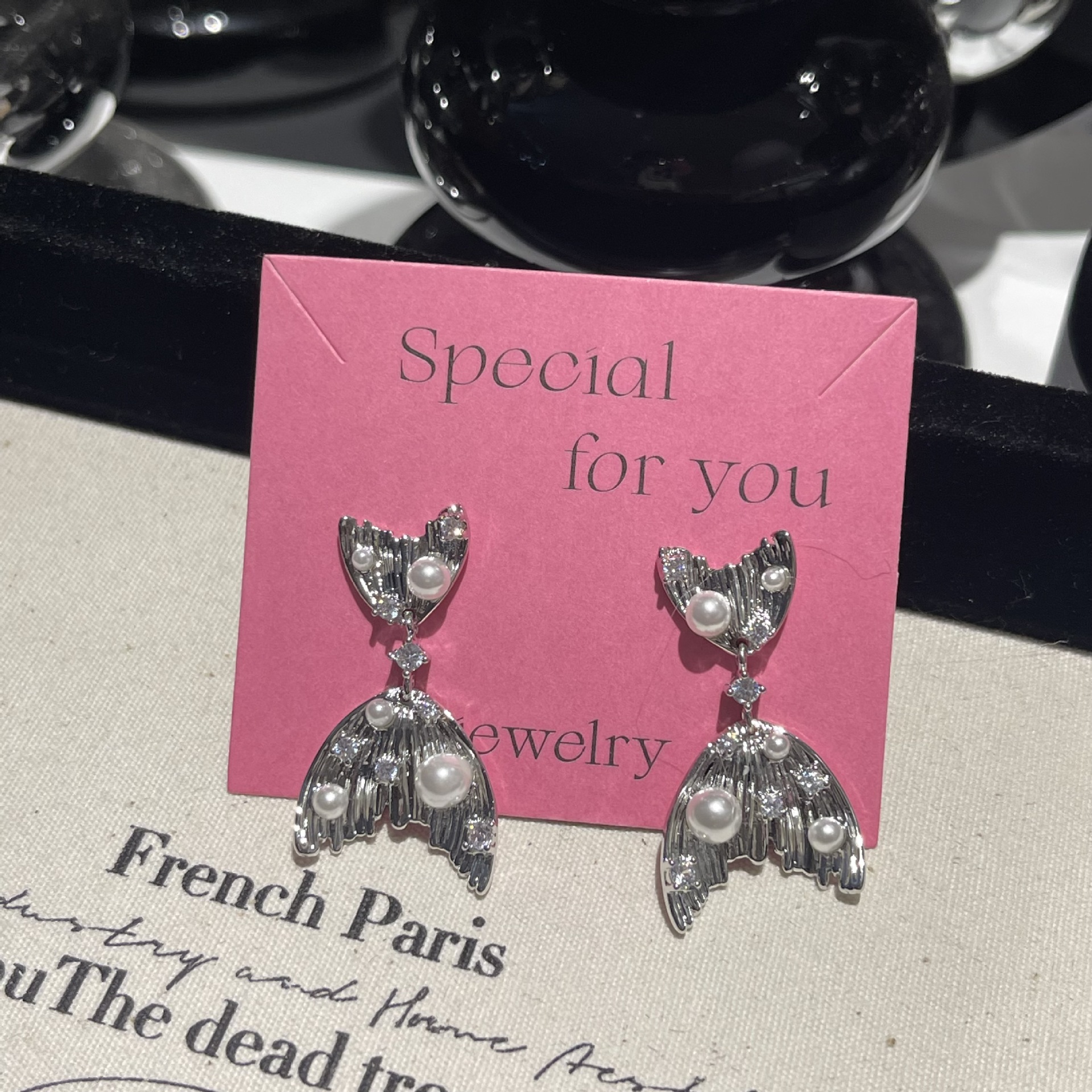 夏の海辺のリゾート風金属真珠魚尾イヤリングS925銀針イヤリング海の娘魚尾イヤリング