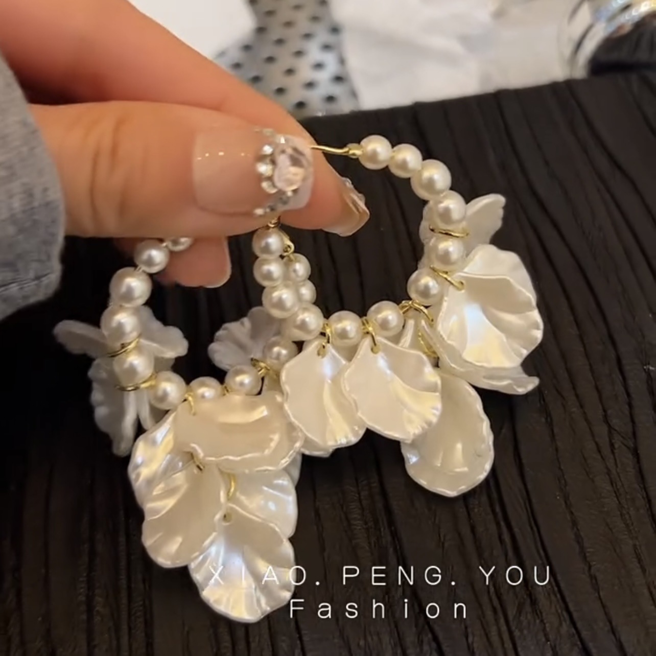 リゾート風の白い貝殻の花びらのイヤリングの気質のファッションの真珠の円は大耳の輪のイヤリングの春の気質を誇張します。