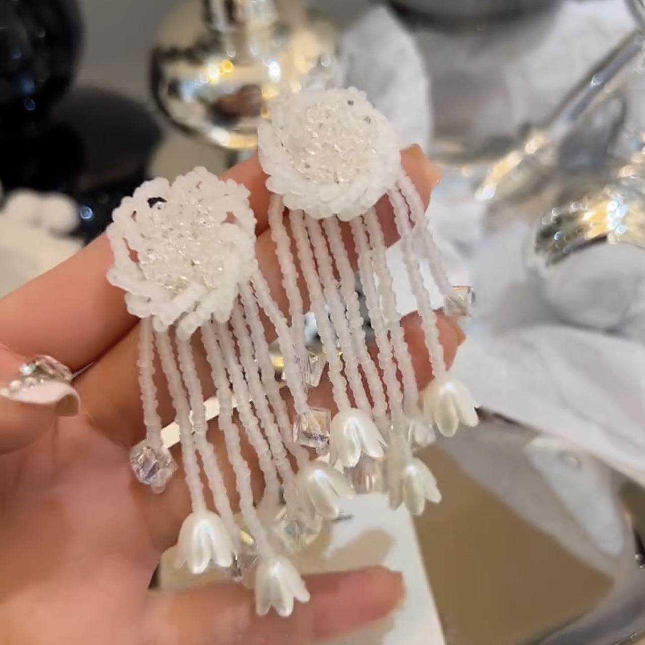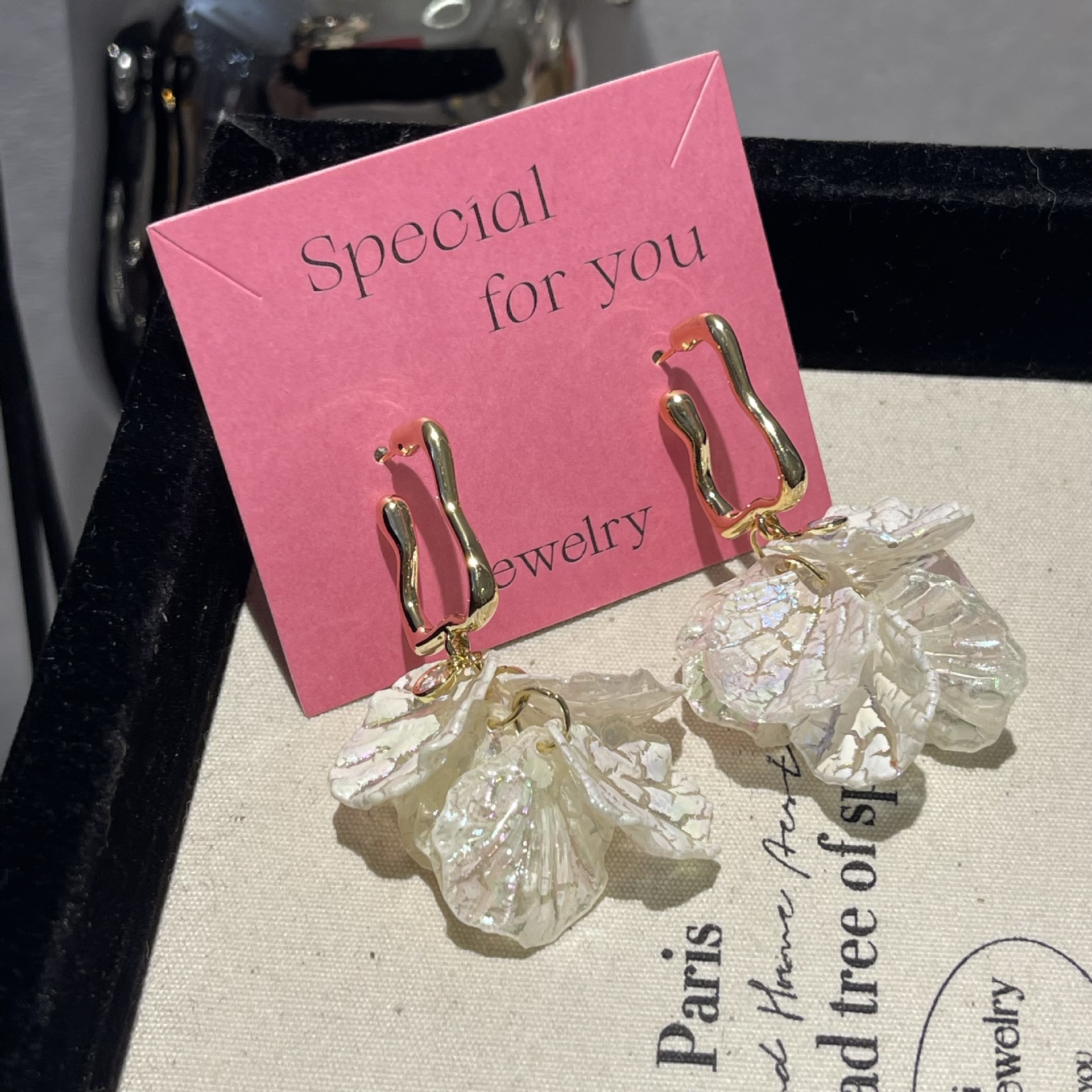春の白い花びらのイヤリングS925銀針の甘い気質が可愛いです。