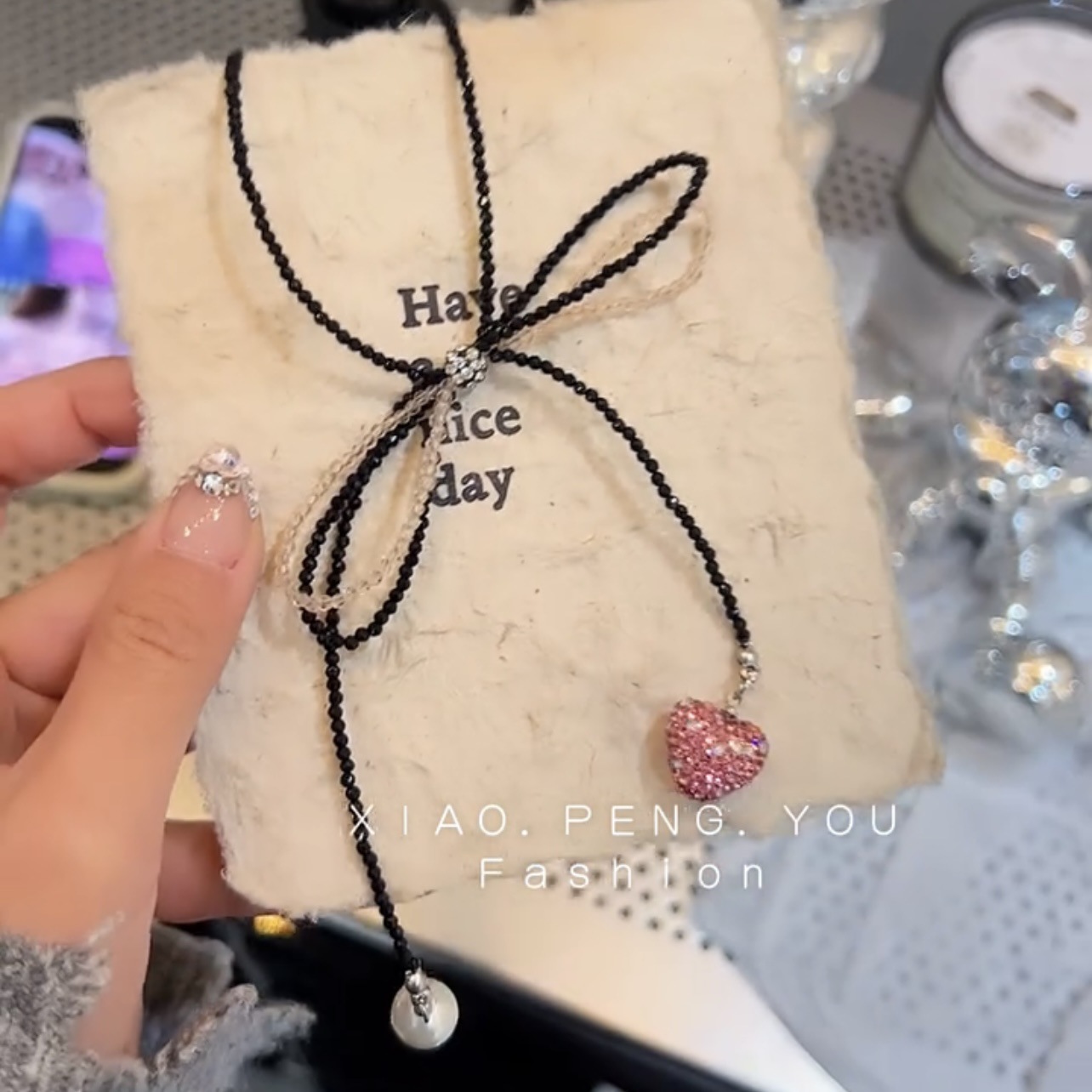 ピンクの愛の蝶結びの真珠のネックレスの女性の大衆のデザイン感の高級なビーズの鎖のギャルの首の鎖の女性