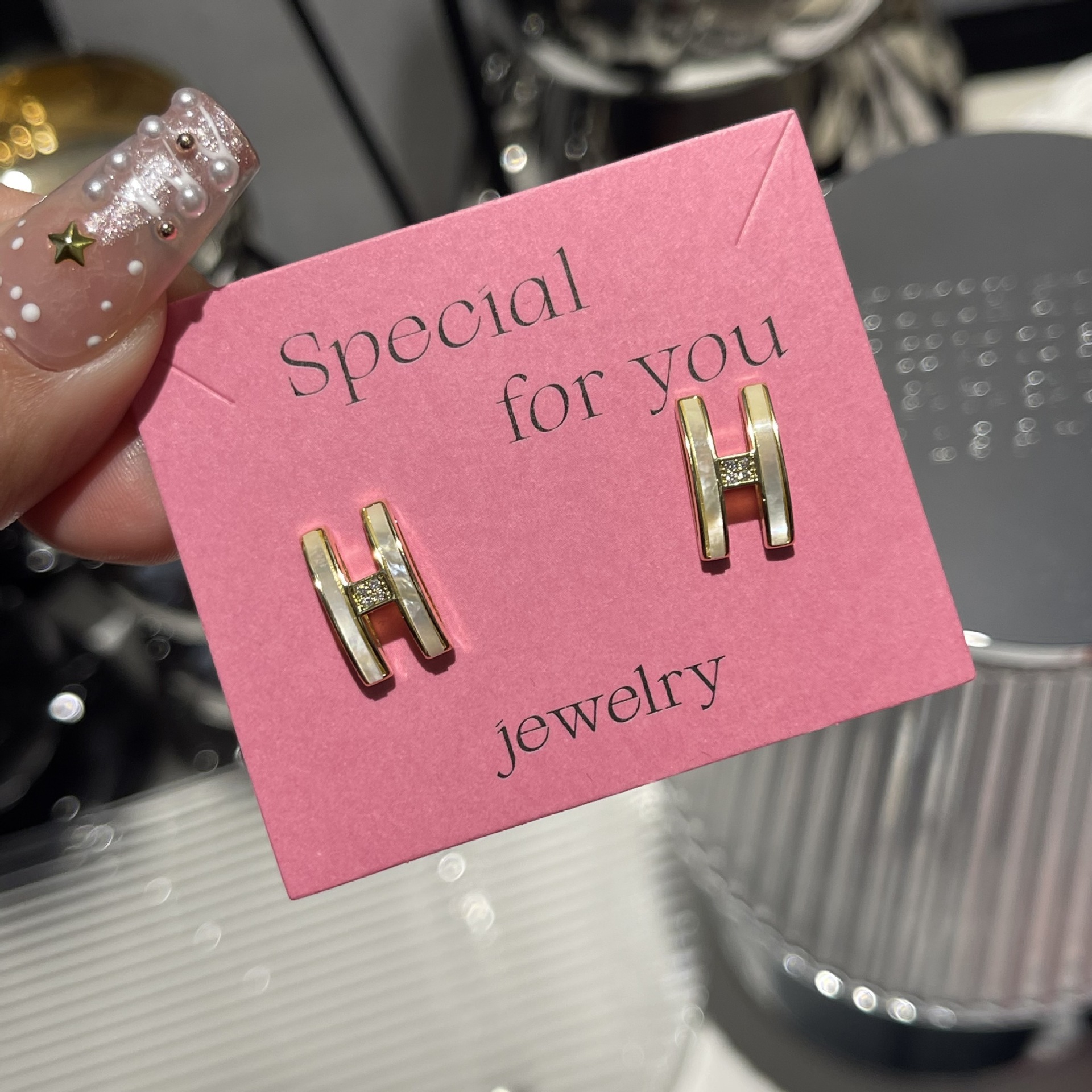 貝殻のアルファベットのピアスs 925銀の針の淑女の気質のファッション的な質感のピアスhのイヤリングの微はジルコンを入れて合わせます。