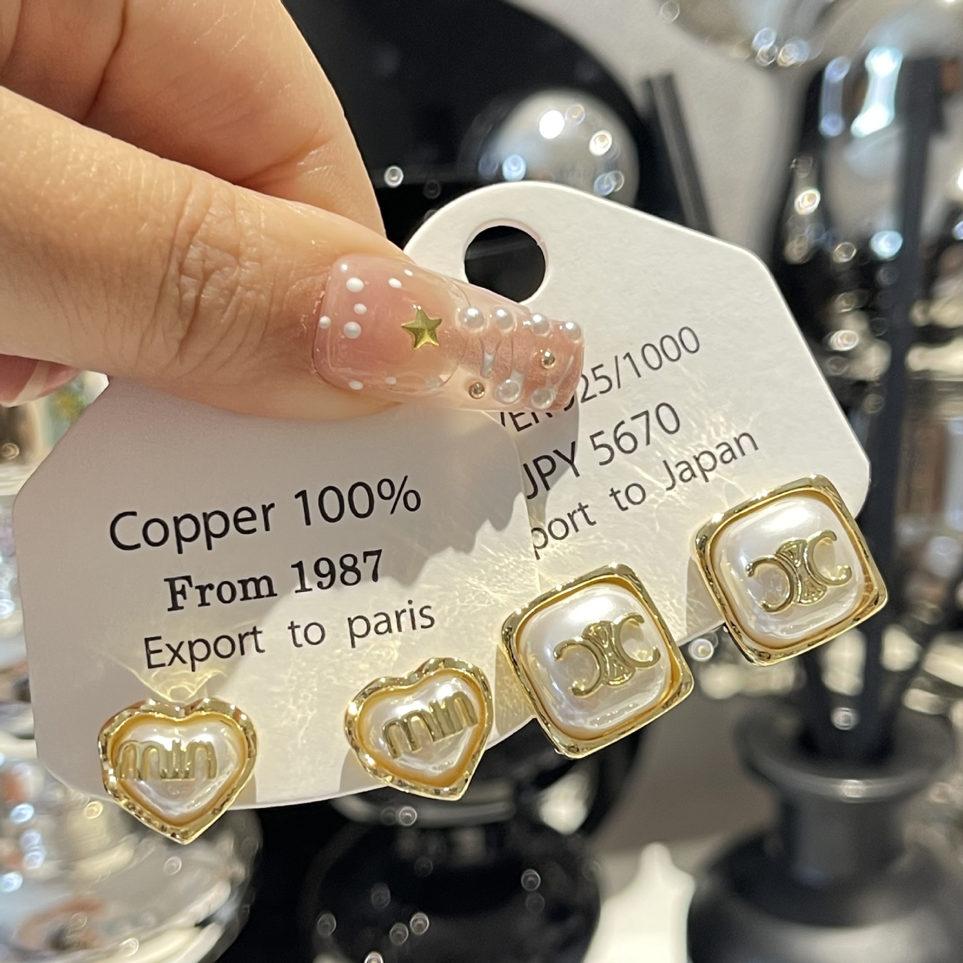 気質真珠アルファベットピアスS925銀針ファッション大牌範クラシック真珠ピアスハート型イヤリング女性百合