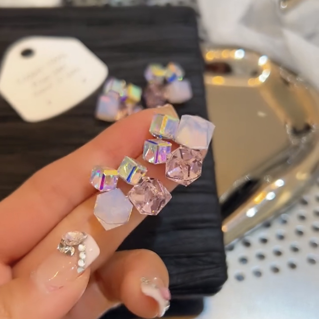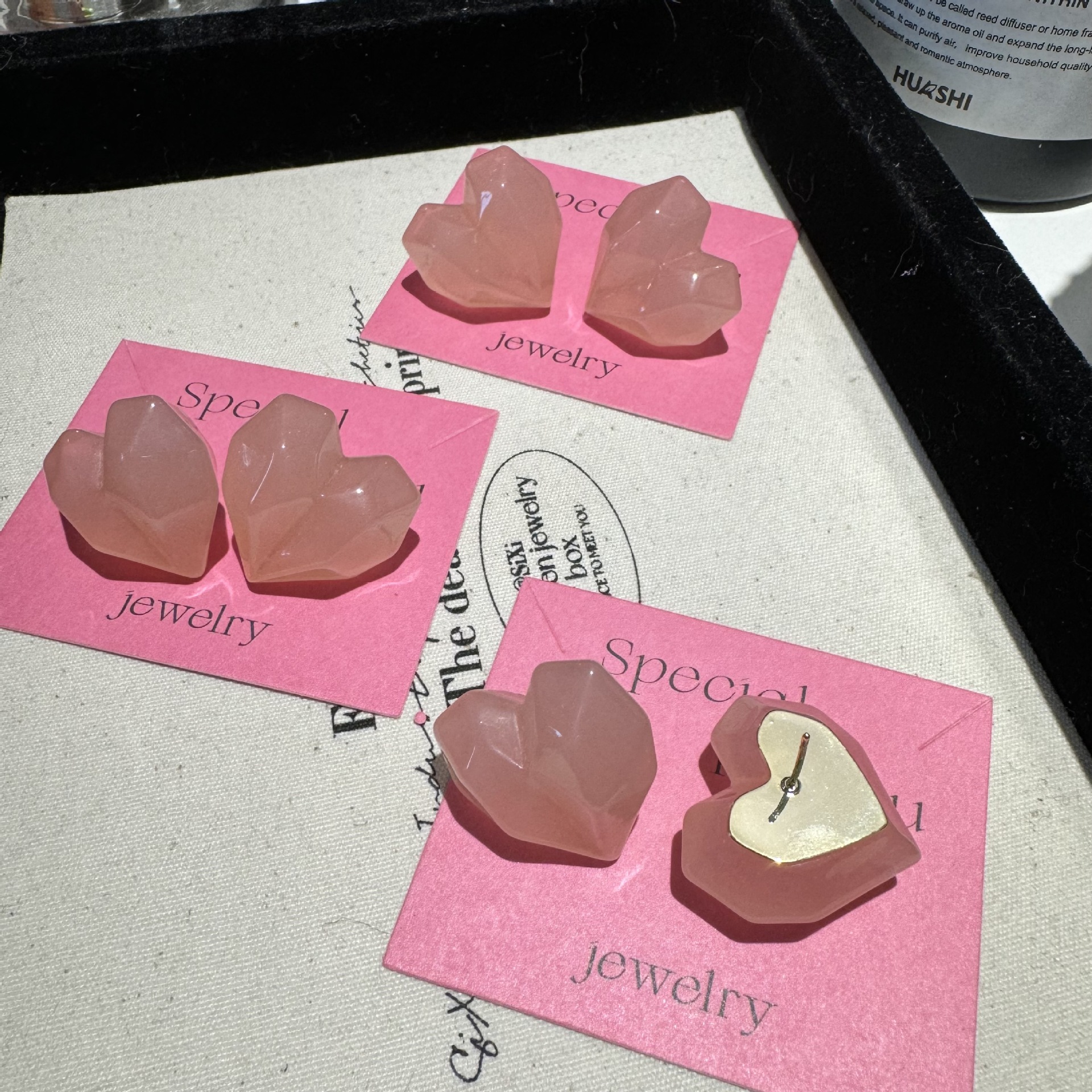 春日キャンディー色愛ピアスs925銀針氷透ピンク双合愛ピアスかわいい小柄で甘い