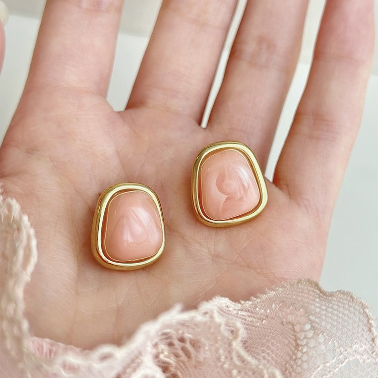 ロマンチックなピンクの樹脂氷透粉の幾何学的な形のピアスs 925銀針の淑女の気質はとても清新で甘いです。