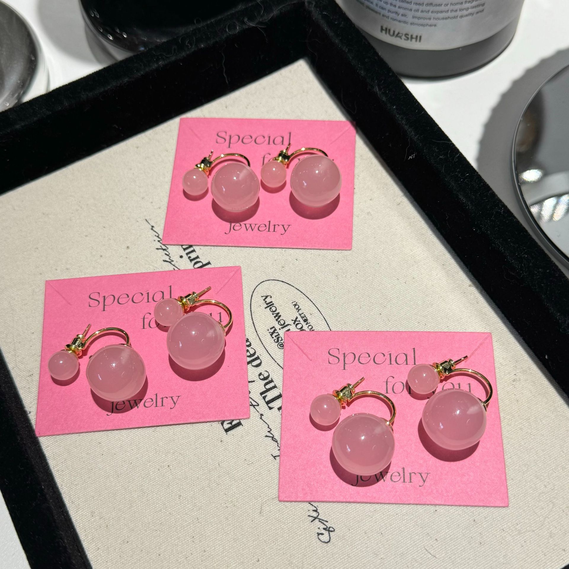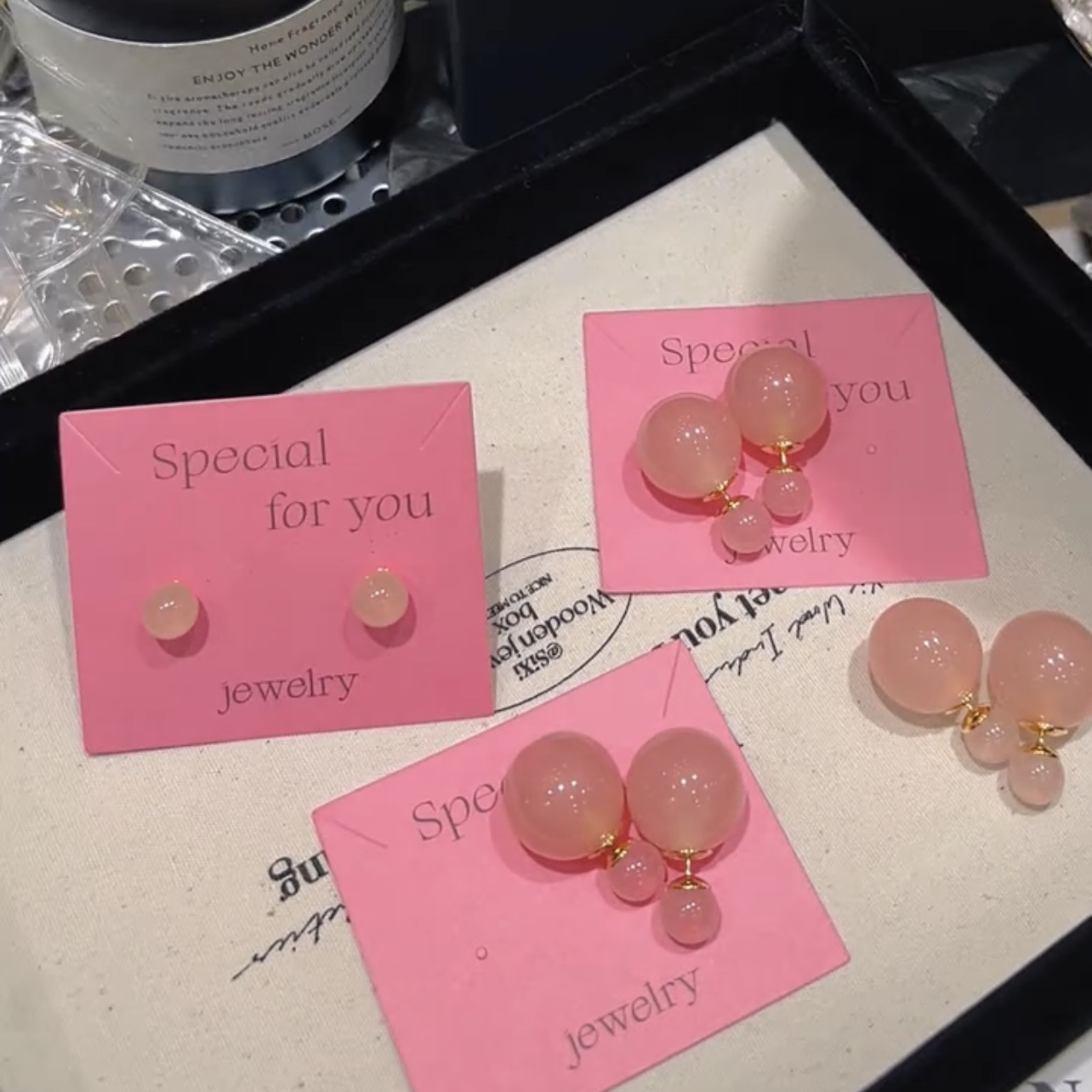 氷透粉両面前後にビーズ付きキャンディー色の甘美で清新な2つのビーズイヤリングs925銀針気質