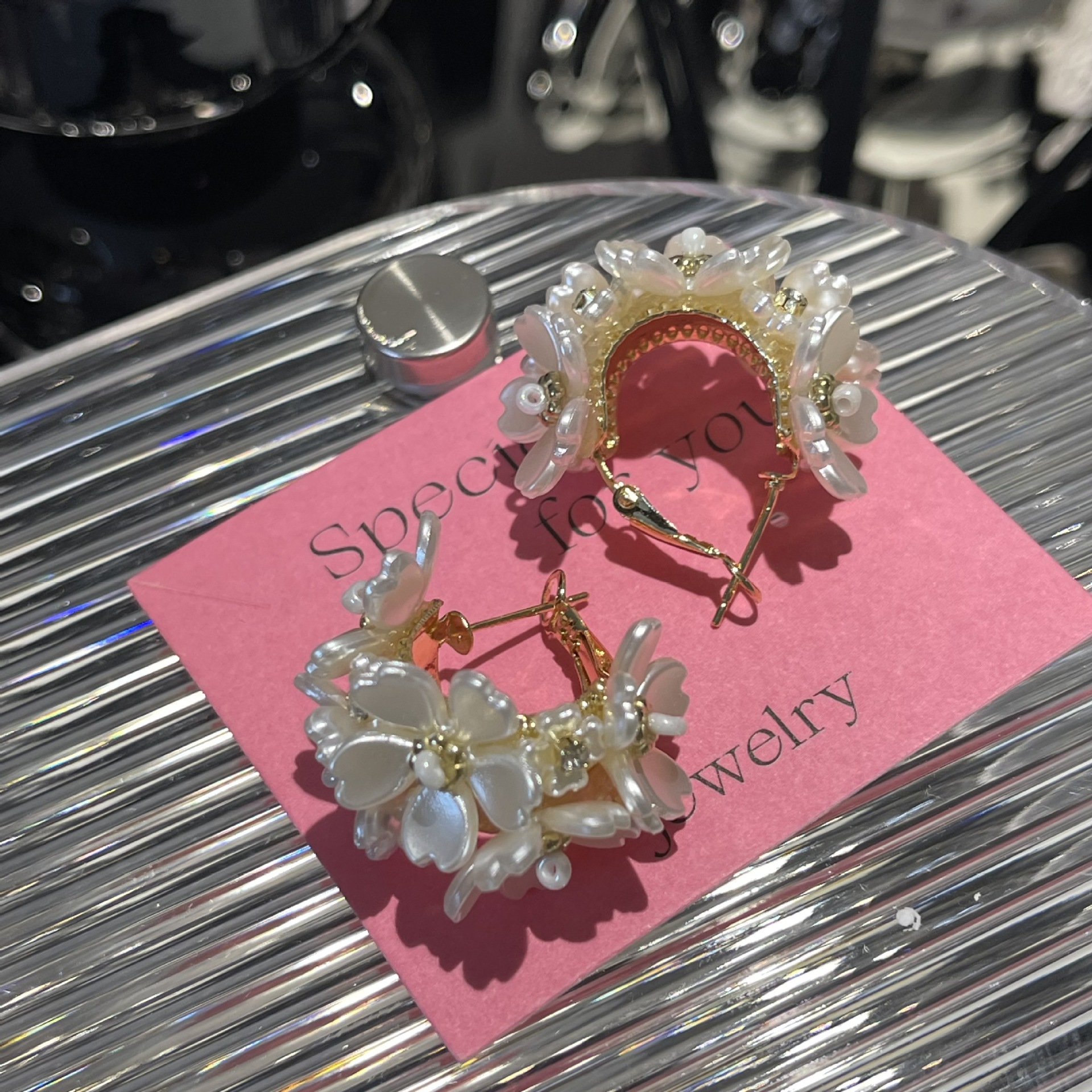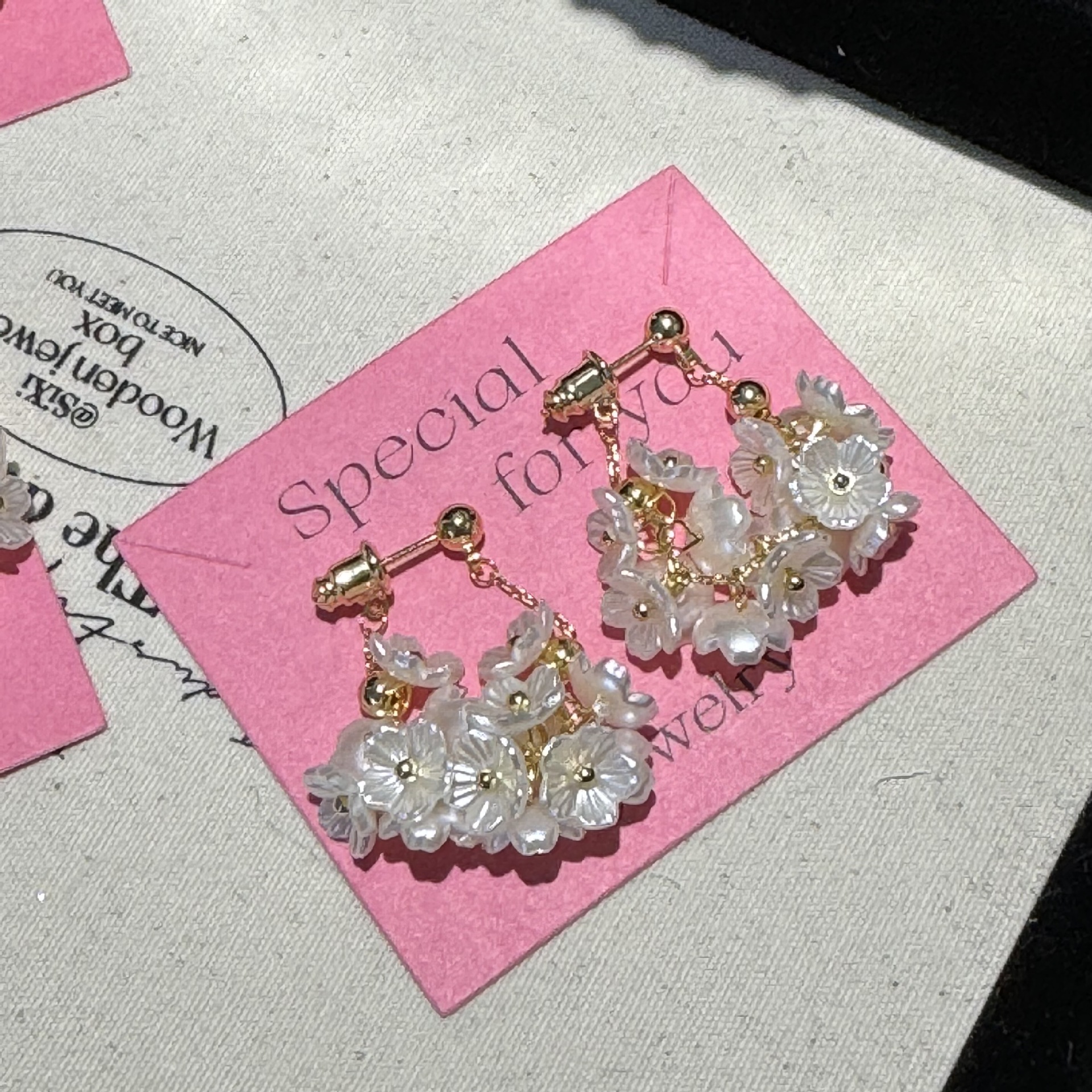 春の花のイヤリングは脂の花びらの前後につけて分解できます。