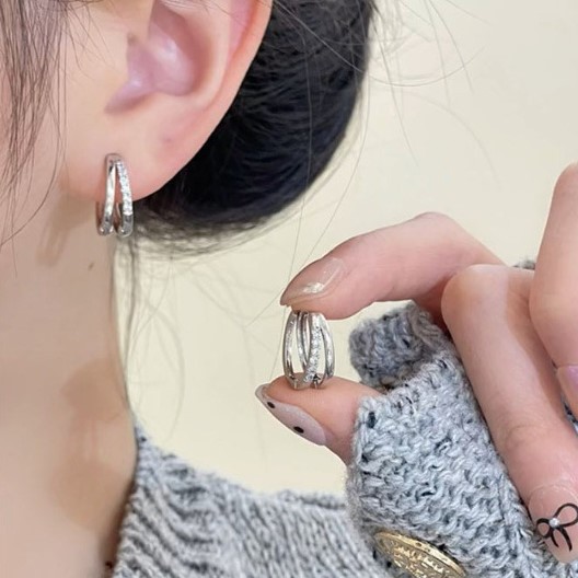銀色の二層の微はめ込み耳のボタンの女性の爆発的な震える音はとても人気があります。