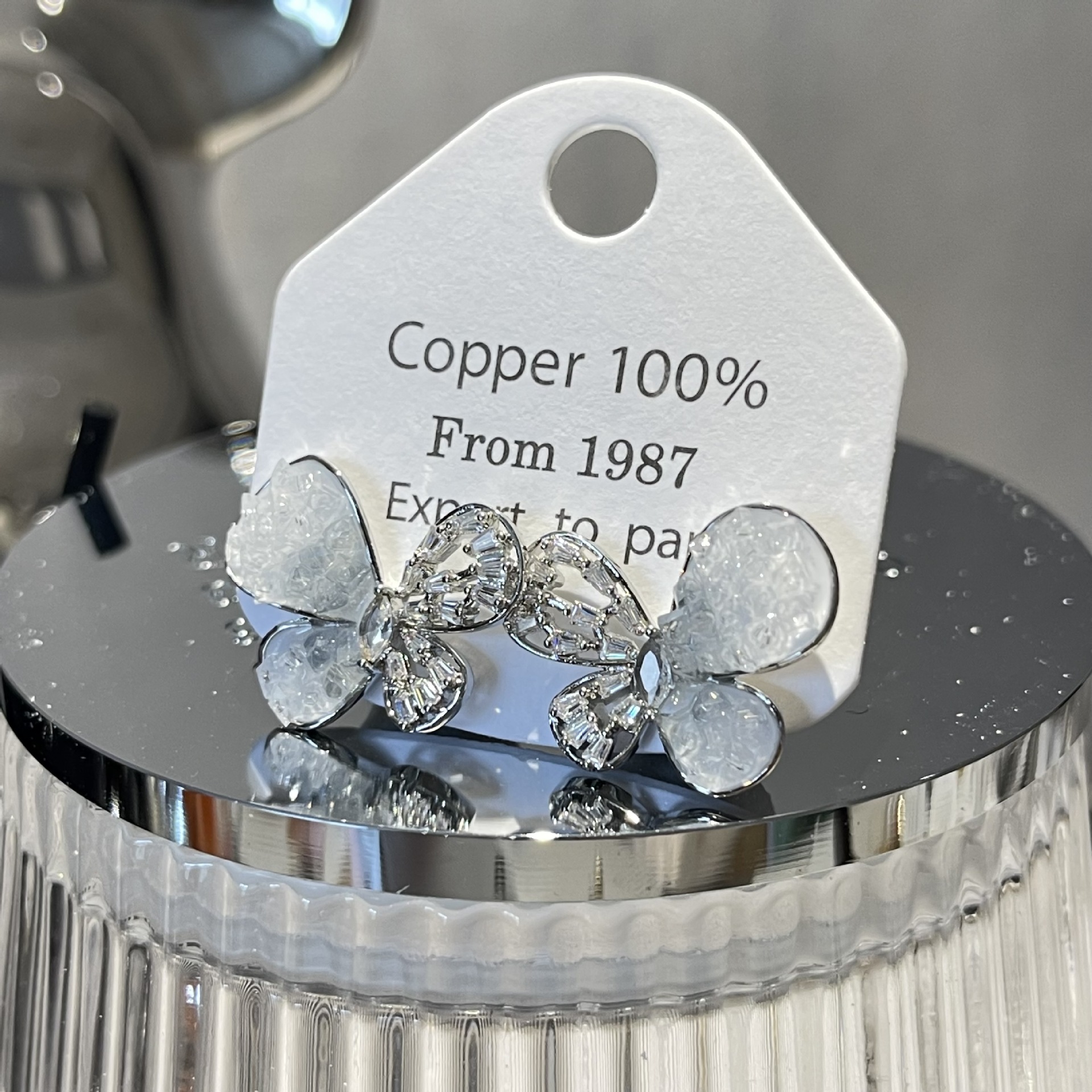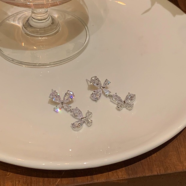 春の蝶ジルコンのイヤリングs925銀針の女性の軽い贅沢な高級感の耳飾り2024新型の爆発的な独特なピアス