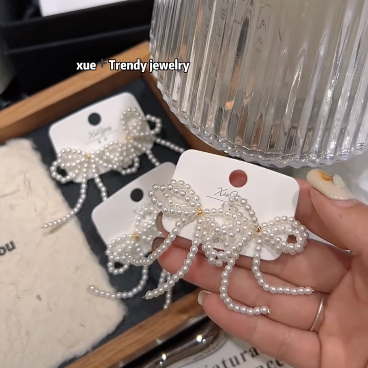 超仙の白い蝶結びのビーズの手作りのイヤリングのファッション的な気質の小さい清新な百合S925銀の針の淑女の百合