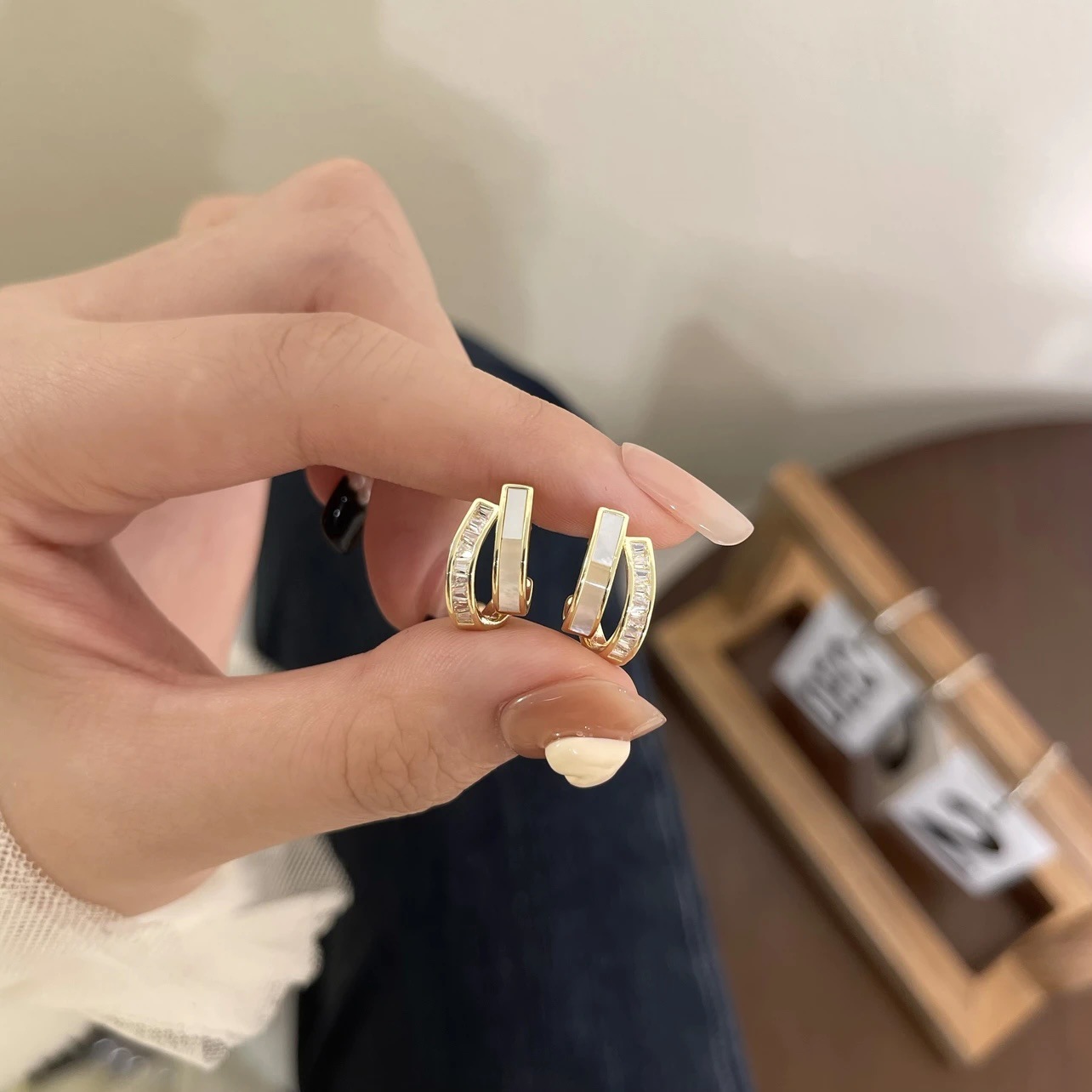 ディザトーンの爆発的な洗練された貝殻にジルコンのピアスs925銀針の女性の気質は、清新で甘い