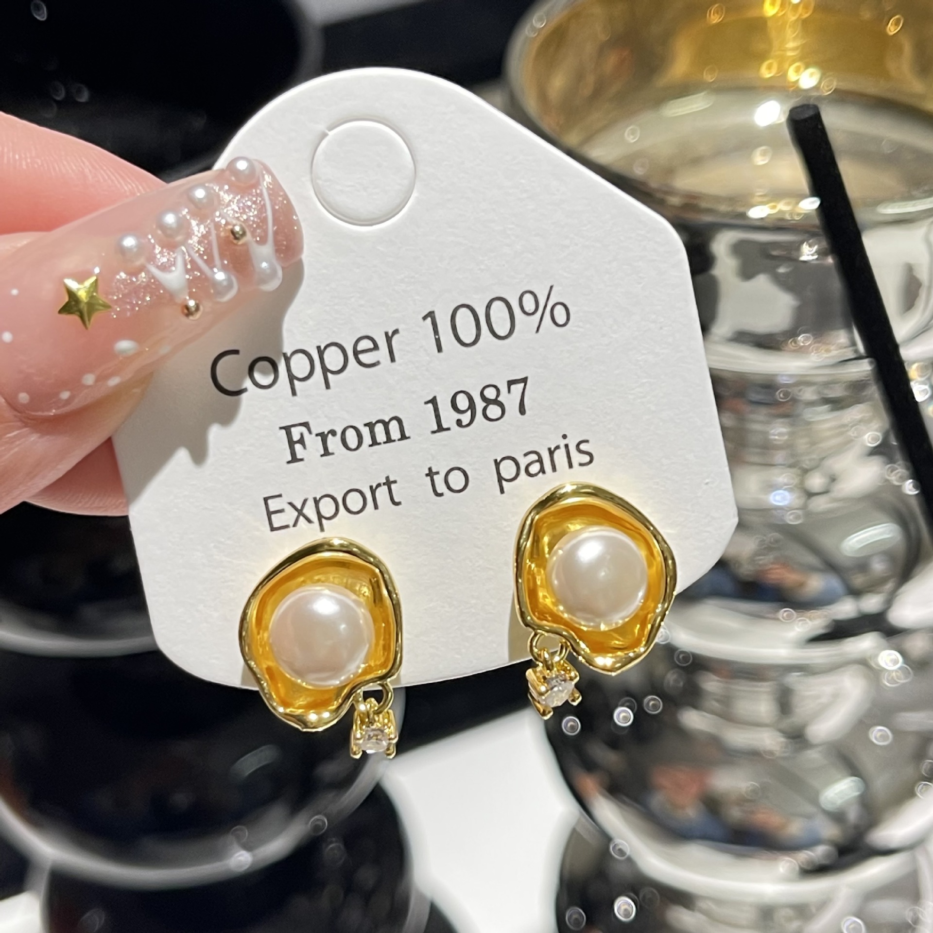 白い真珠のピアスの女性2024の新型の爆発的な高級感のイヤリングの大衆の設計の独特な耳のボタンの気質の耳飾り
