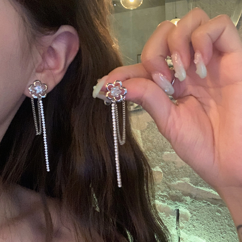 花のジルコンタッセルイヤリング 心拍数 女性用 夏 2025年新作 イヤリング ニッチデザイン 高級イヤリング