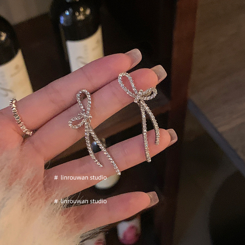 蝶結び真珠ピアスS925銀針小清新女小衆デザイン感高級気質2025年新イヤリング