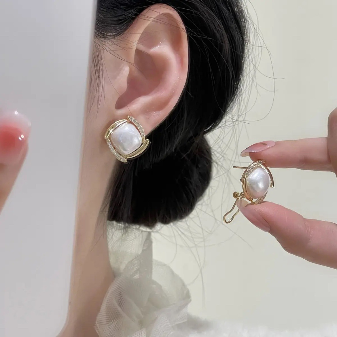 おしゃれな雰囲気の貝殻の形の真珠はダイヤモンドのイヤリングを入れます。