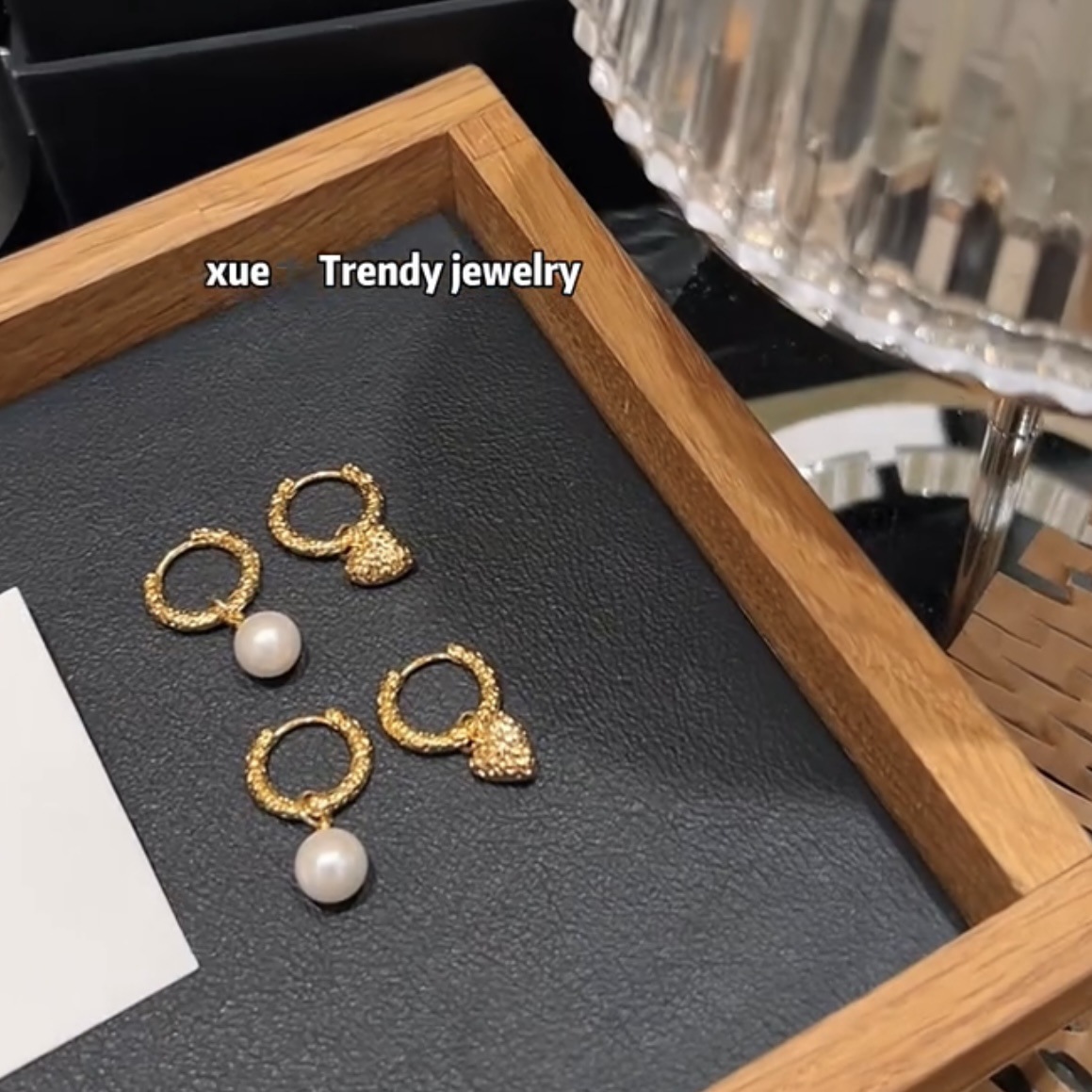 韓国東大門気質非対称愛真珠イヤリング耳留め金百合ファッション淑女甘い耳輪