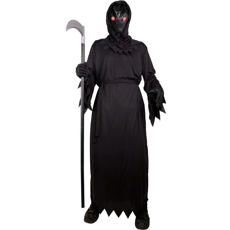 ハロウィーンのマントの大人の明るい皮のマントのスタンドカラーの帽子の黒い死神のマントの黒いマント
