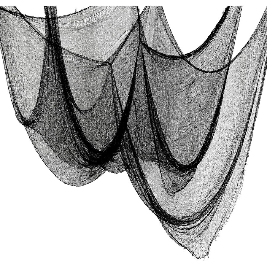 76 * 183CMハロウィーン装飾黒ガーゼホラーテーマ装飾テーブルクロステーブル旗黒ネット糸スポット