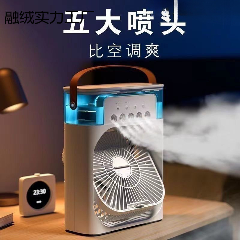 5穴スプレー加湿冷風扇、エアコンファン、学生寮、オフィス用、電源式、3in1ナノスプレー