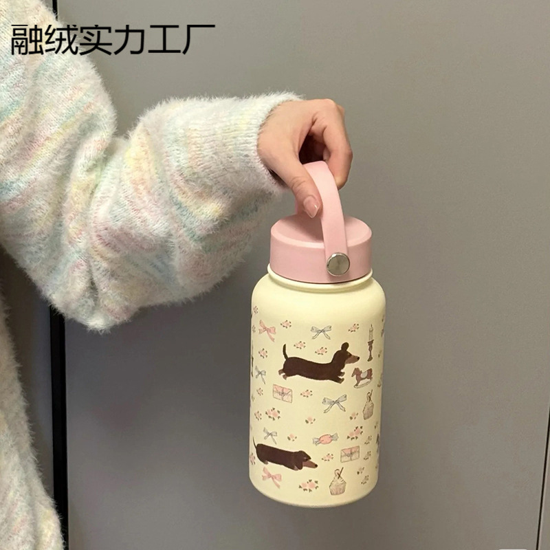 可爱大容量保温杯办公室高颜值手提不锈钢水杯子外出便携式水壶女