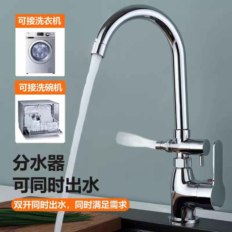 壁式冷熱蛇口台所洗濯池ベランダ洗面器万向回転招き猫混水弁壁出