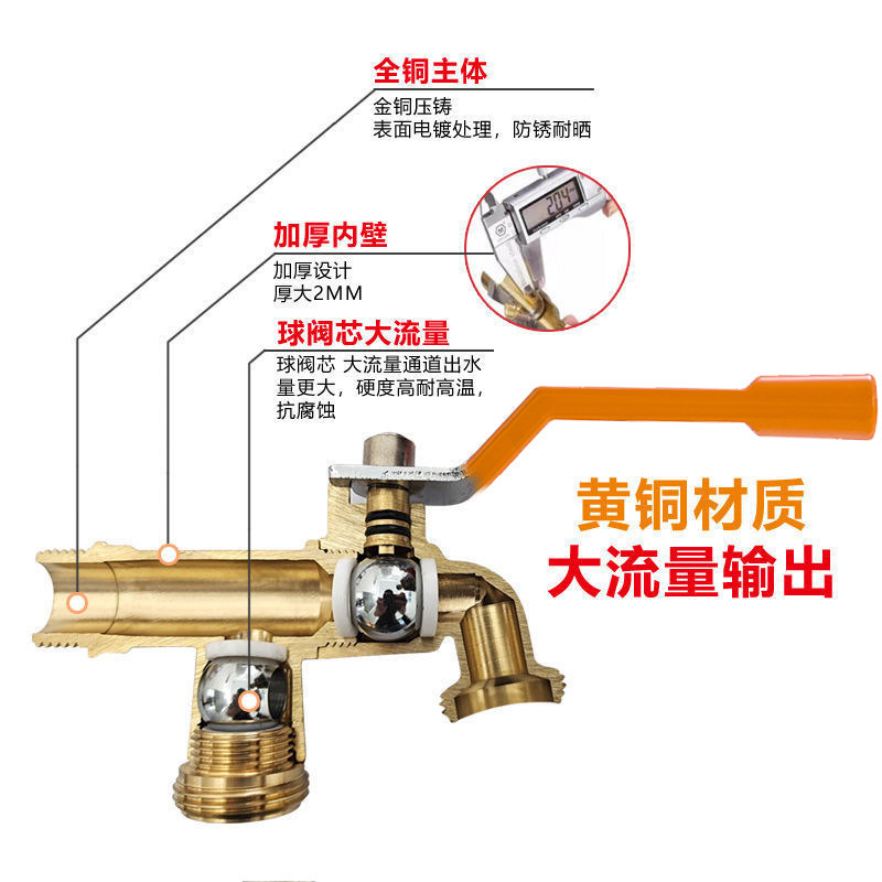 全銅製屋外蛇口、不凍球ハート、1入口、2出口、中庭洗濯機、ダブルアウト屋外ロック付き蛇口、ダブルコントロール