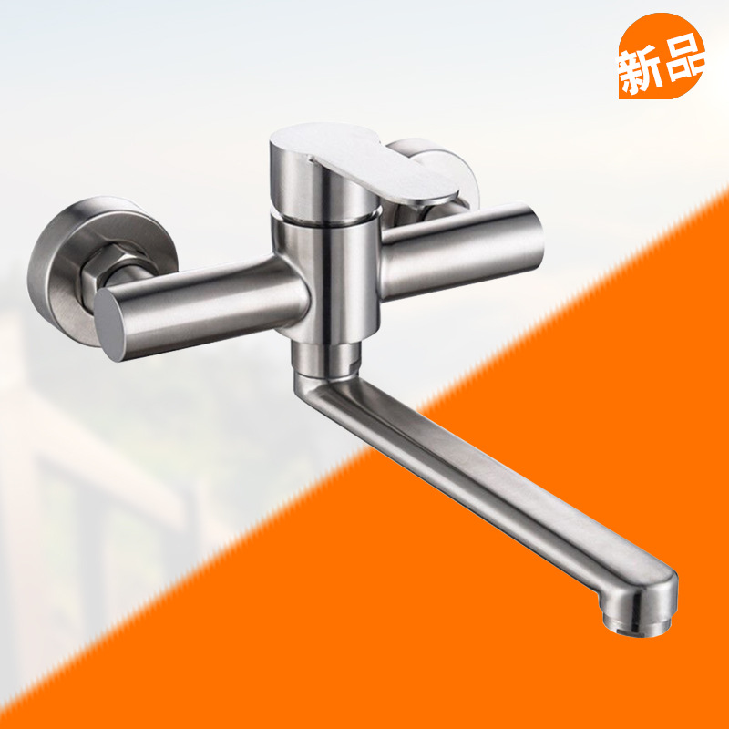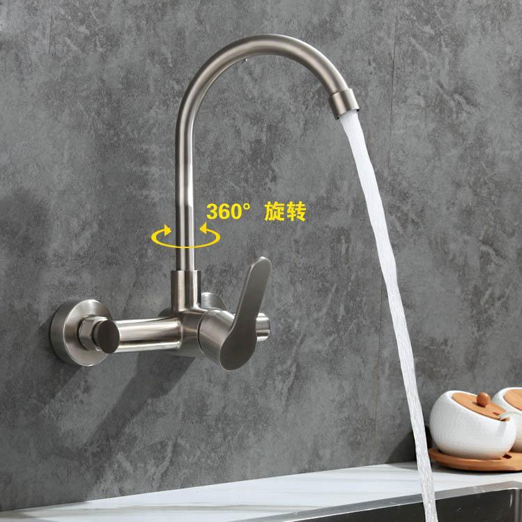 蛇口は壁に入ります。冷熱304ステンレスの二穴洗濯盆の洗濯池の蛇口は台所で蛇口を回転させます。