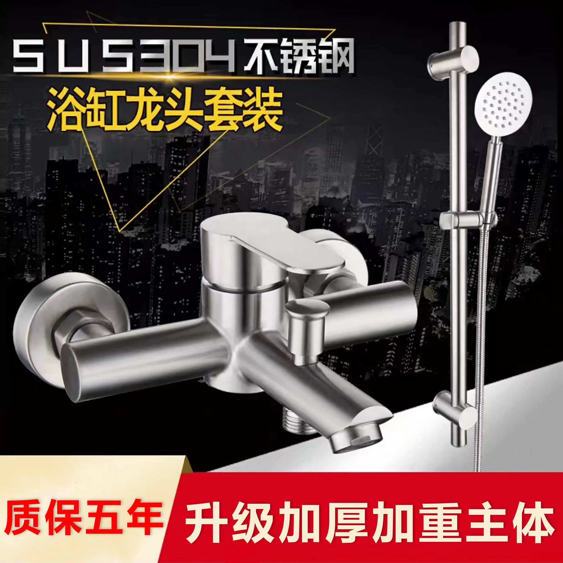 304ステンレスシャワー蛇口浴室暗装三連バスタブ冷熱蛇口混水弁シャワーセット