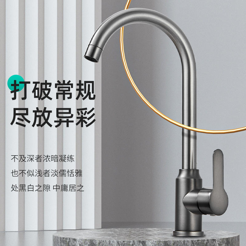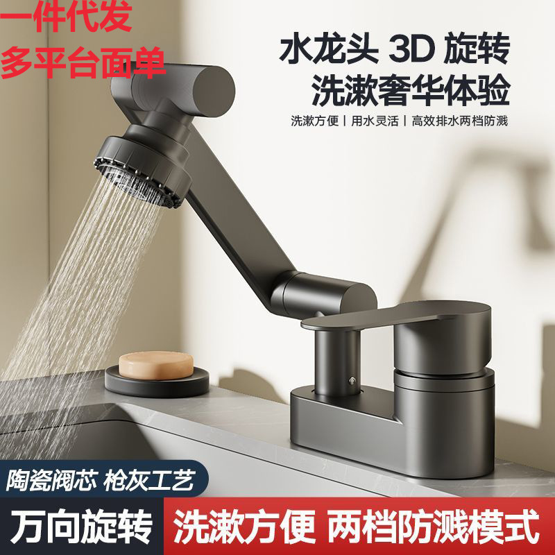 ロボットアームステンレス蛇口洗面器蛇口グレー招き猫自在回転冷熱蛇口多機能