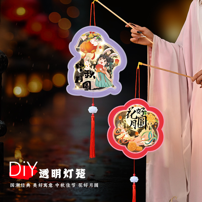 2024新型中秋節提灯古風漢服花灯児童手作りdiy材料手持ち宮灯装飾品