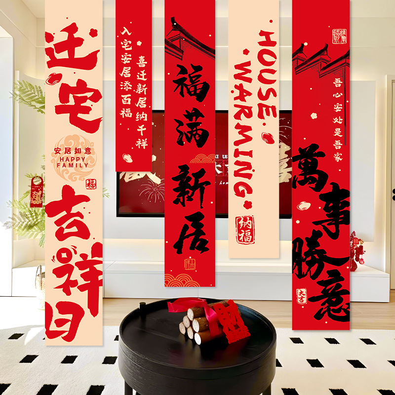 喬迁の喜新居装飾条幅対聯客間引っ越し住宅新築式配置用品セット