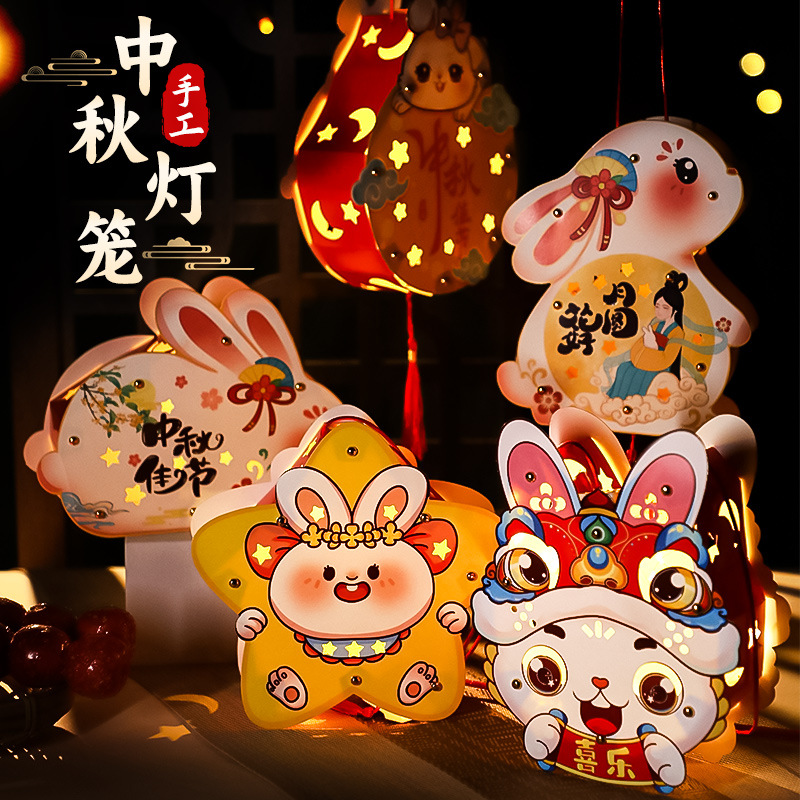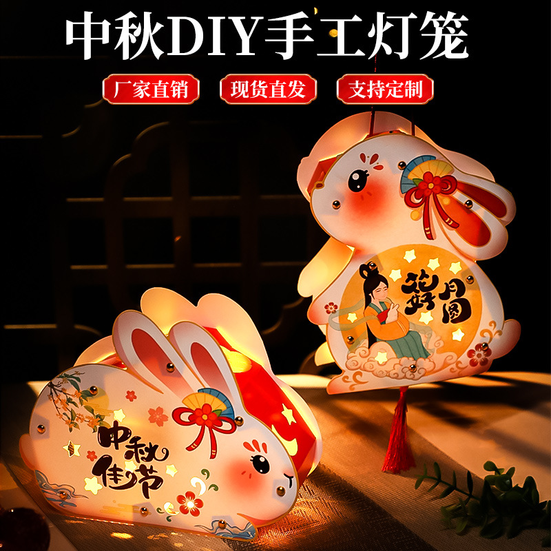 中秋節2024新型ウサギ提灯児童中国式ハンディランプ手作りdiy材料包発光提灯