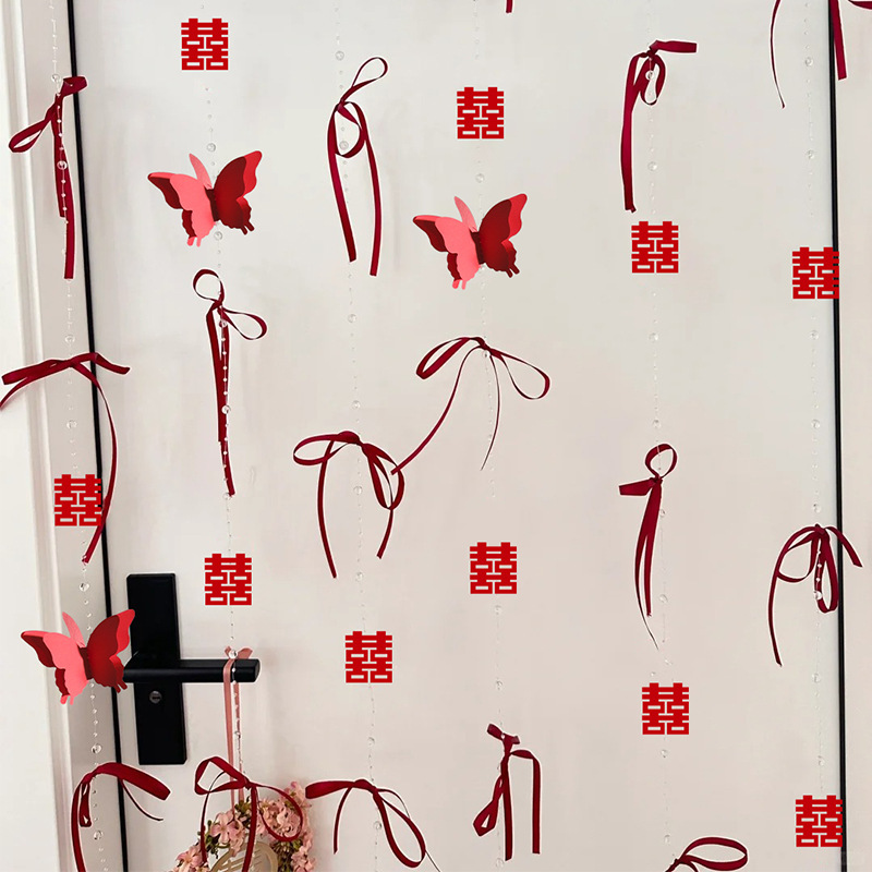 客間装飾結婚室配置セット男性側女性側新居主寝室結婚式喜字花吊り天井喜簾