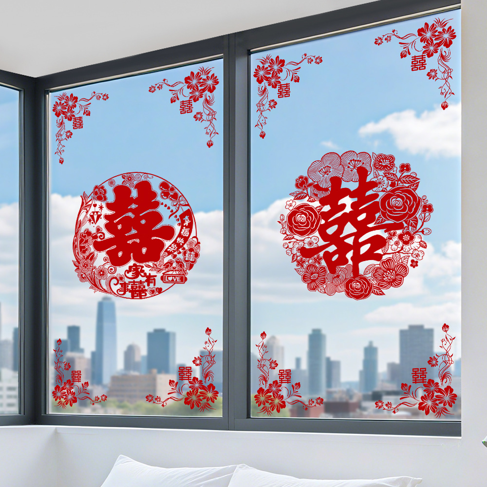 植毛静電喜字シール結婚室装飾配置水粘ガラス建具家具階段結婚用品大全