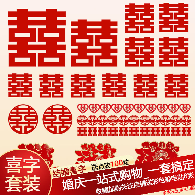 喜字結婚専用静電は窓の結婚部屋を貼ります。