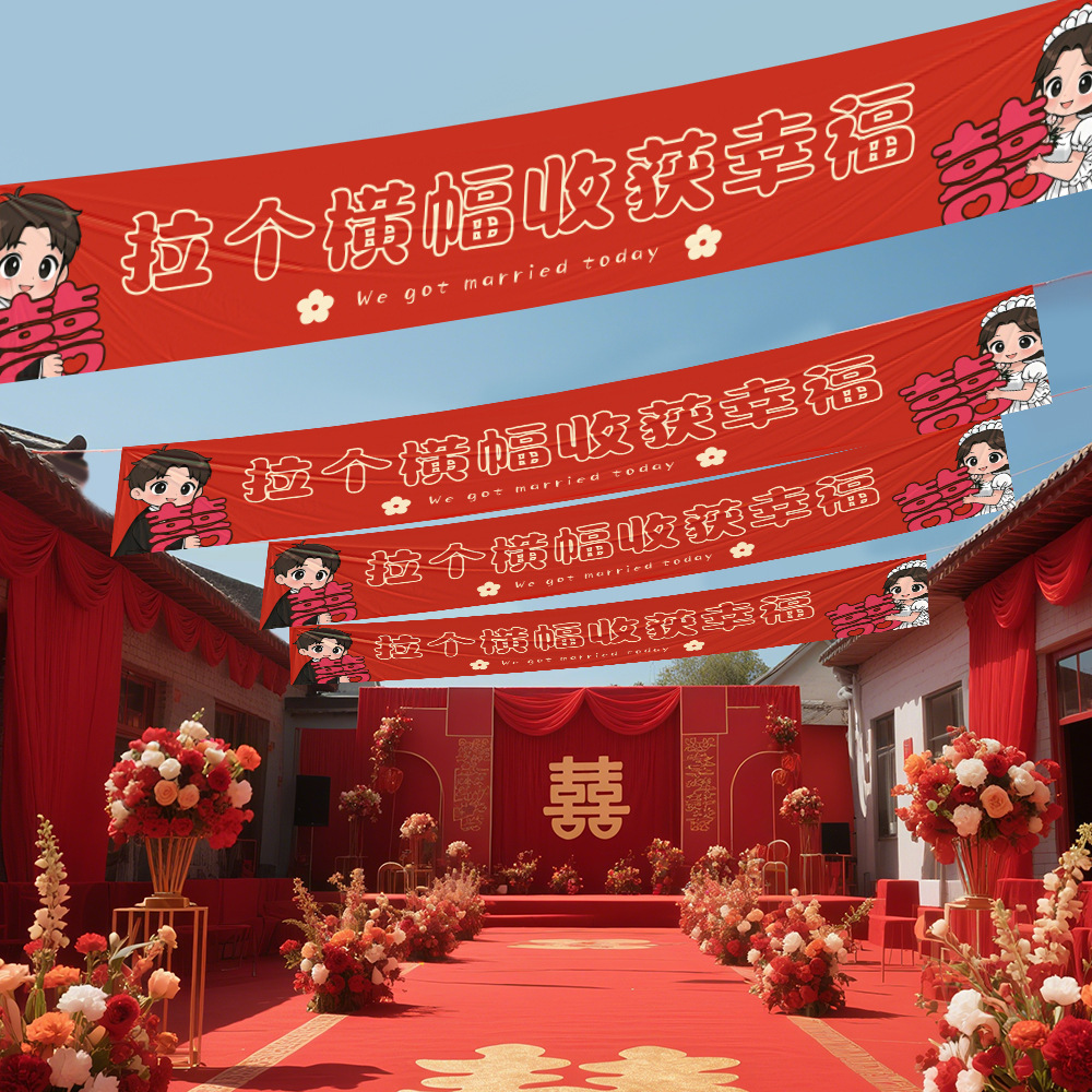 田舎の結婚式中庭結婚式庭レイアウト結婚式の部屋の装飾屋外バナー吊り下げ布バナー漫画ハッピーワード