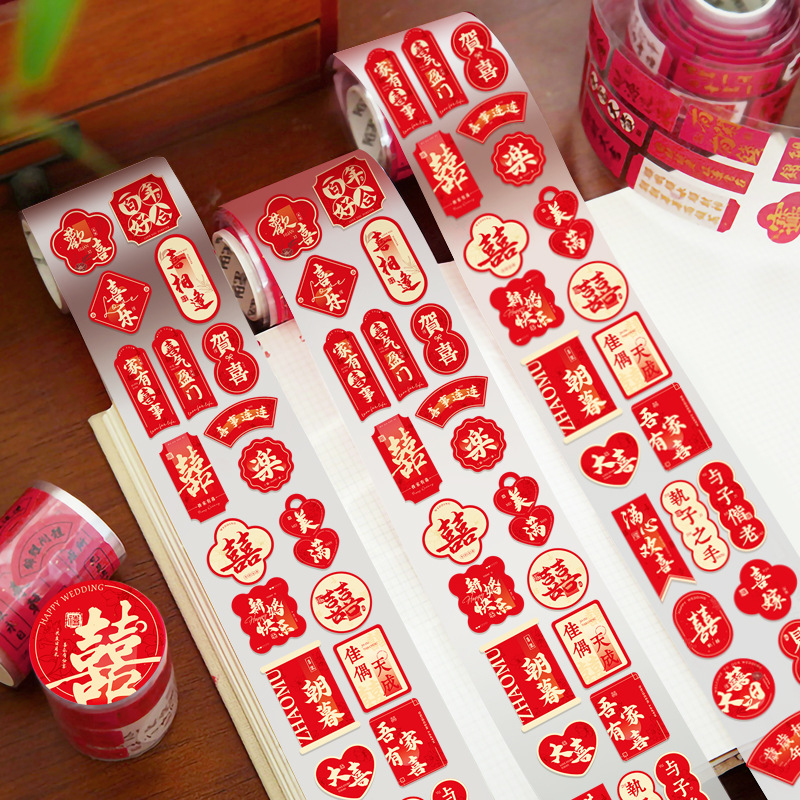 結婚の小さい喜の字のステッカーのシールの結婚祝いの用品の果物の喜糖の箱の卵は結婚する部屋の装飾の配置を貼ります。